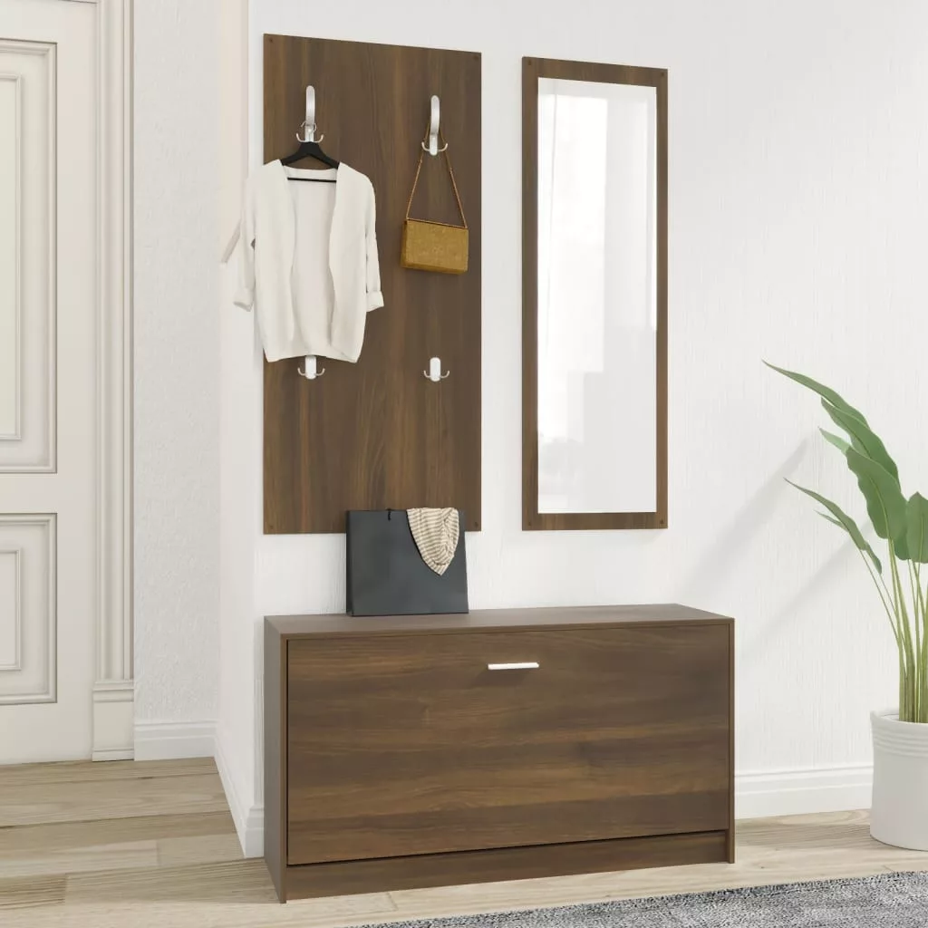 Ez a 3 az 1-ben cipőszekrény szett egy stílusos cipős szekrényből, egy falra szerelhető tükörből és egy ruhafogasból áll, számtalan tárolási megoldást kínálva.