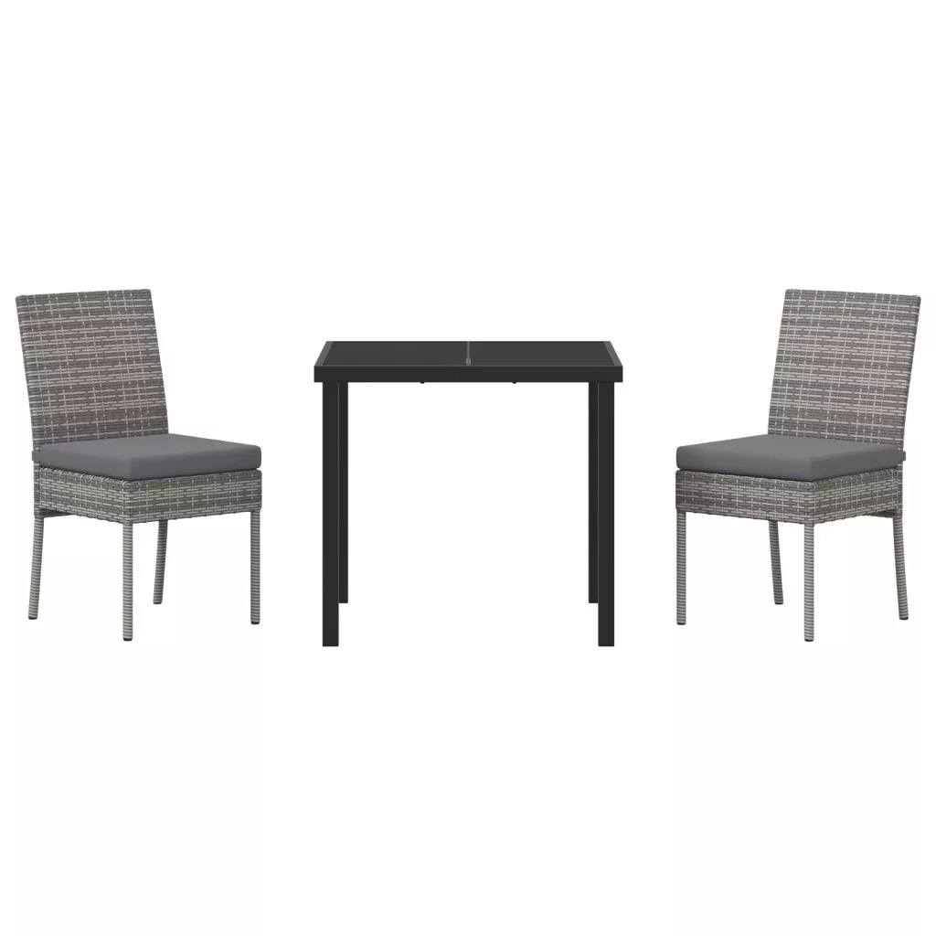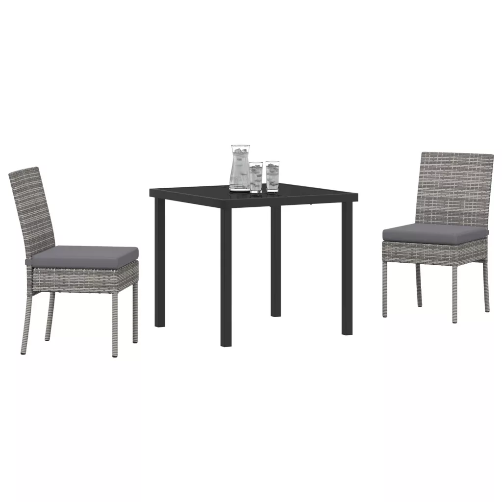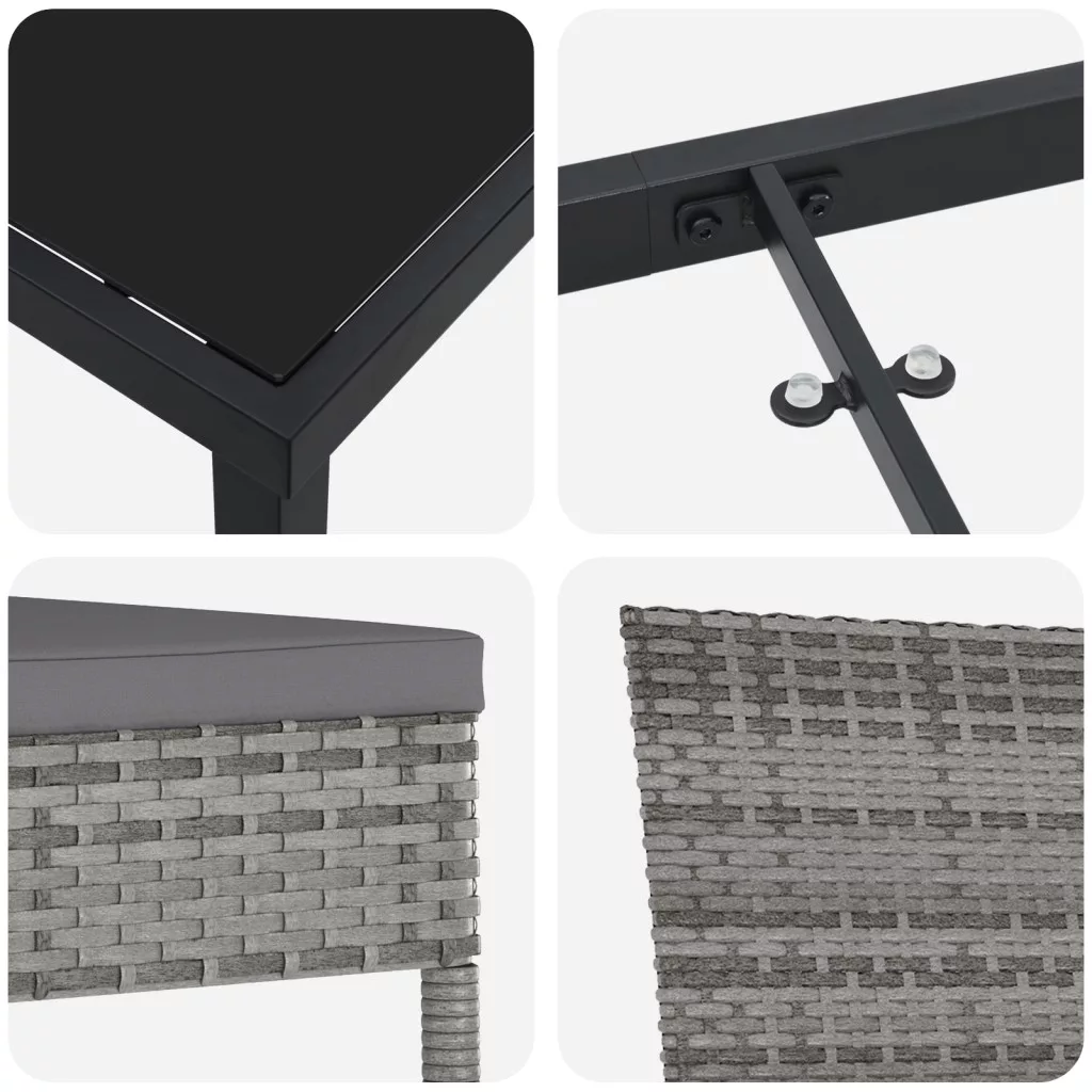 Ez a kerti étkezőszék szett remek választás a kültéri terasz vagy a hátsó kert feldobásához. Letisztult szürke megjelenés és modern poli rattan dizájn jellemzi, ami nemcsak jól néz ki, de kényelmes is, így ideális étkezéshez, pihenéshez vagy csak a friss levegő élvezetéhez.