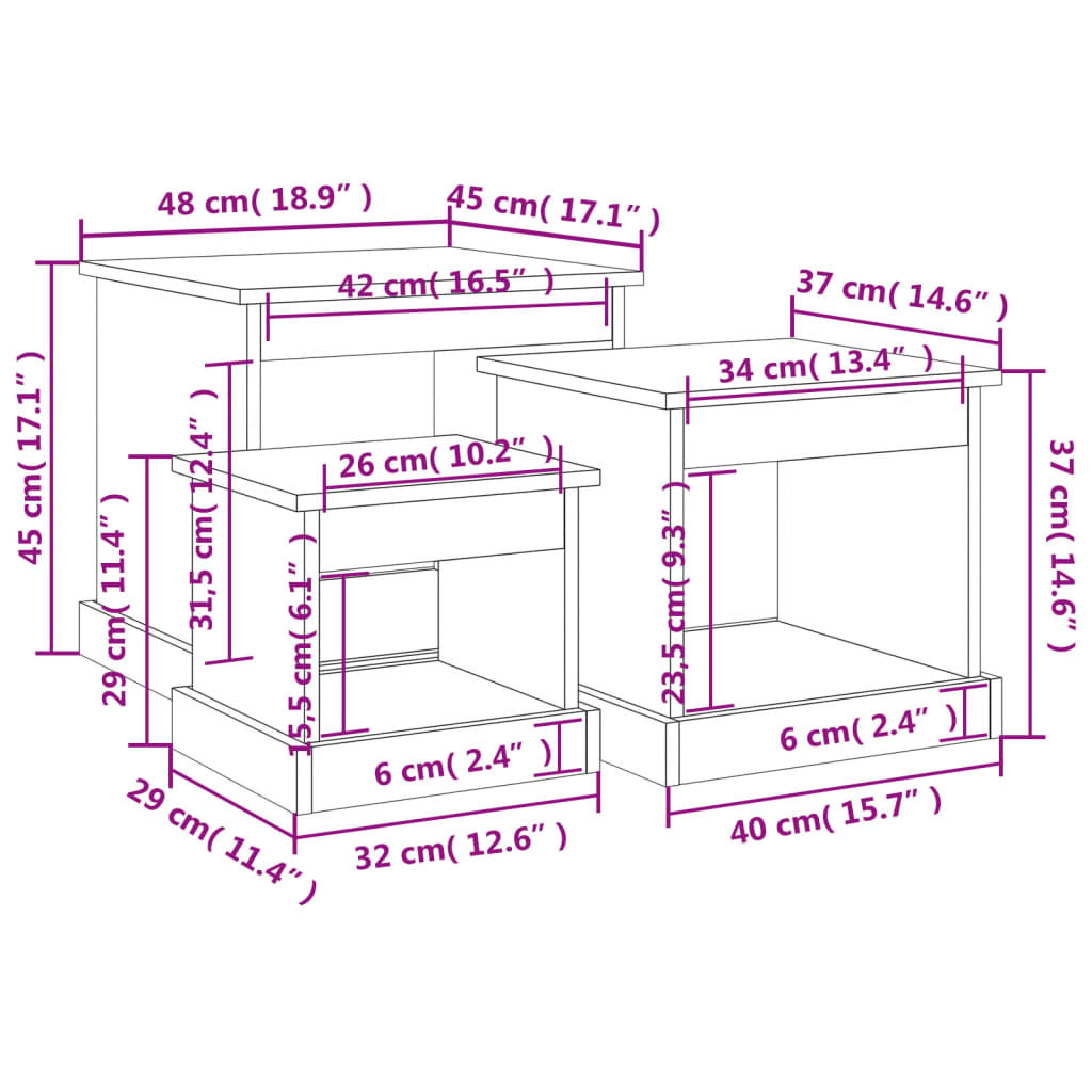 - Sokoldalú felhasználás: Ez a 3 darabos asztal szett sokoldalú! Bármelyik használható éjjeliszekrényként a hálószobában, illetve kisasztalként vagy kanapéasztalként a nappaliban és az irodában.