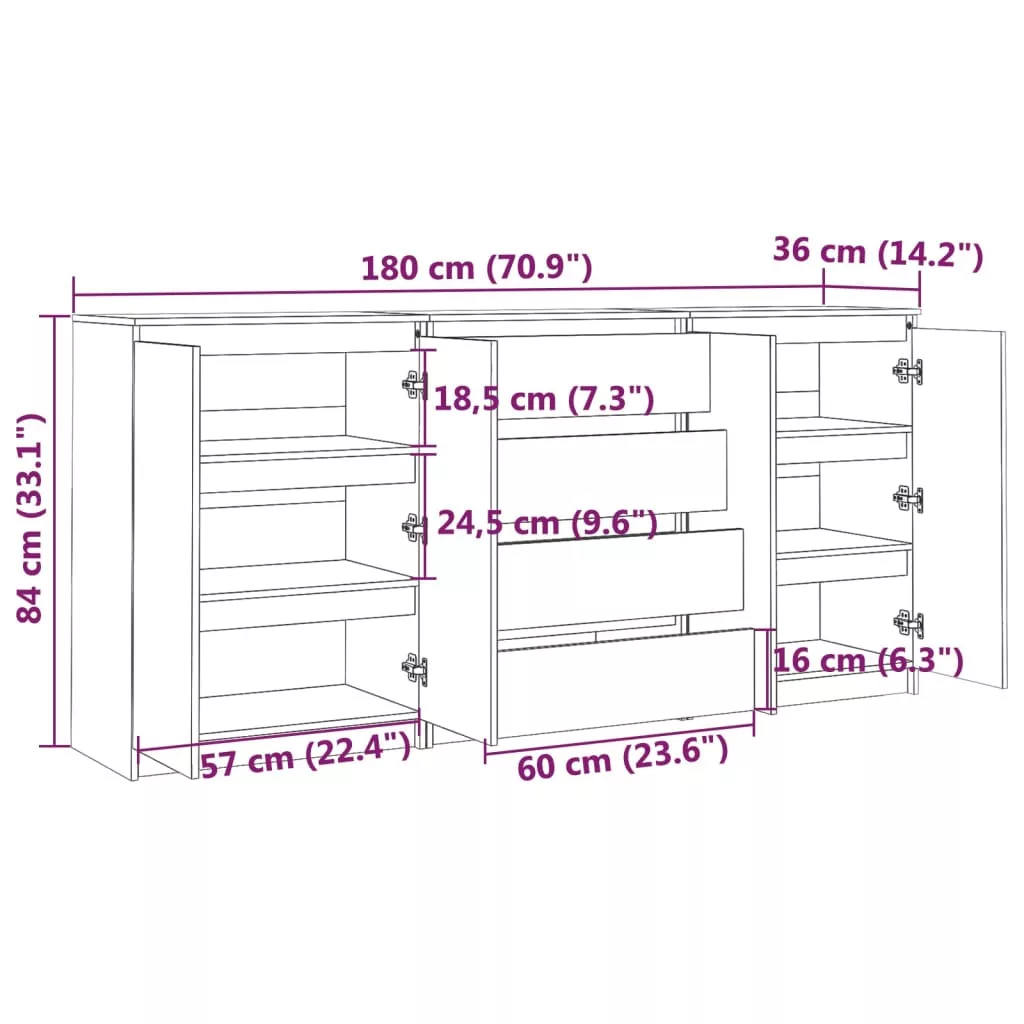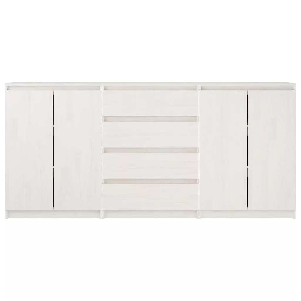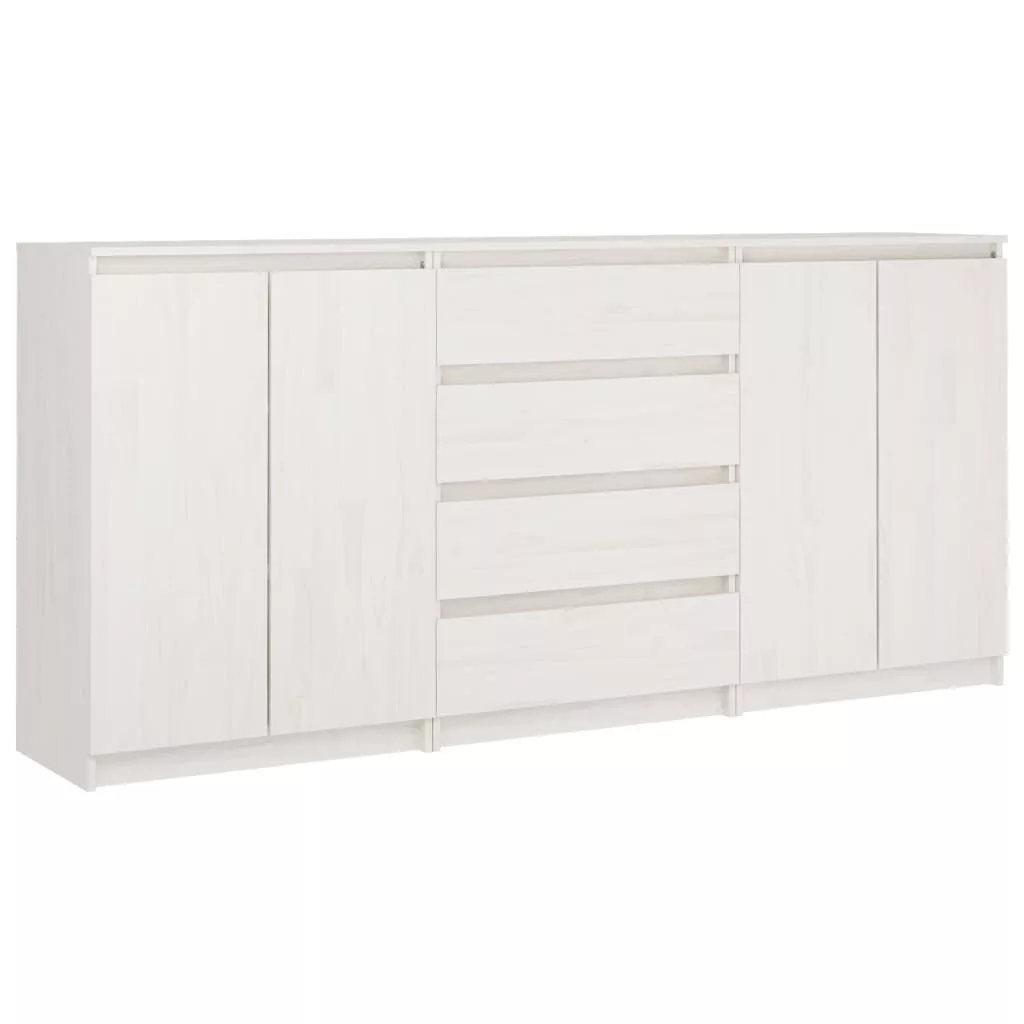 Ezek az éjjeliszekrények tömör fenyőfából készültek, így masszívak és tartósak. A szett két darab háromrekeszes kétajtós szekrényből és egy négyfiókos szekrényből áll, amelyek bőséges helyet nyújtanak különféle tárgyak rendezett és kézközelben való tárolására. Masszív felületére dísztárgyakat, képkereteket vagy akár cserepes növényeket is helyezhet. Emellett ezek az éjjeliszekrények nedves ruhával könnyen tisztíthatók.