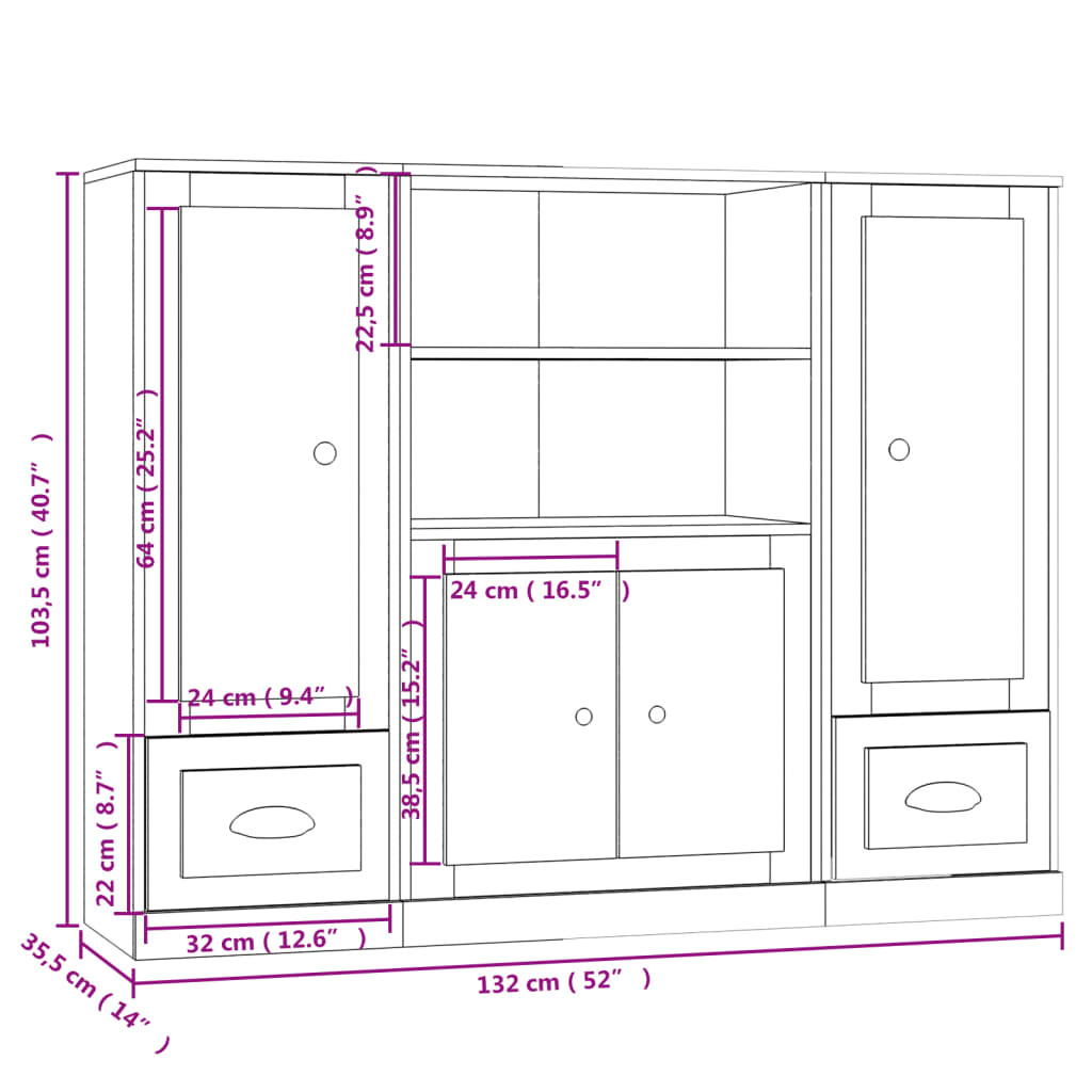 vidaXL 3 db szürke sonoma szerelt fa magasszekrény