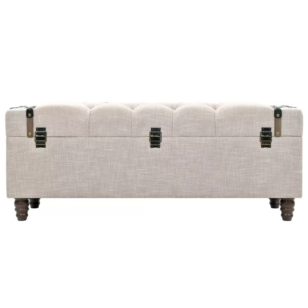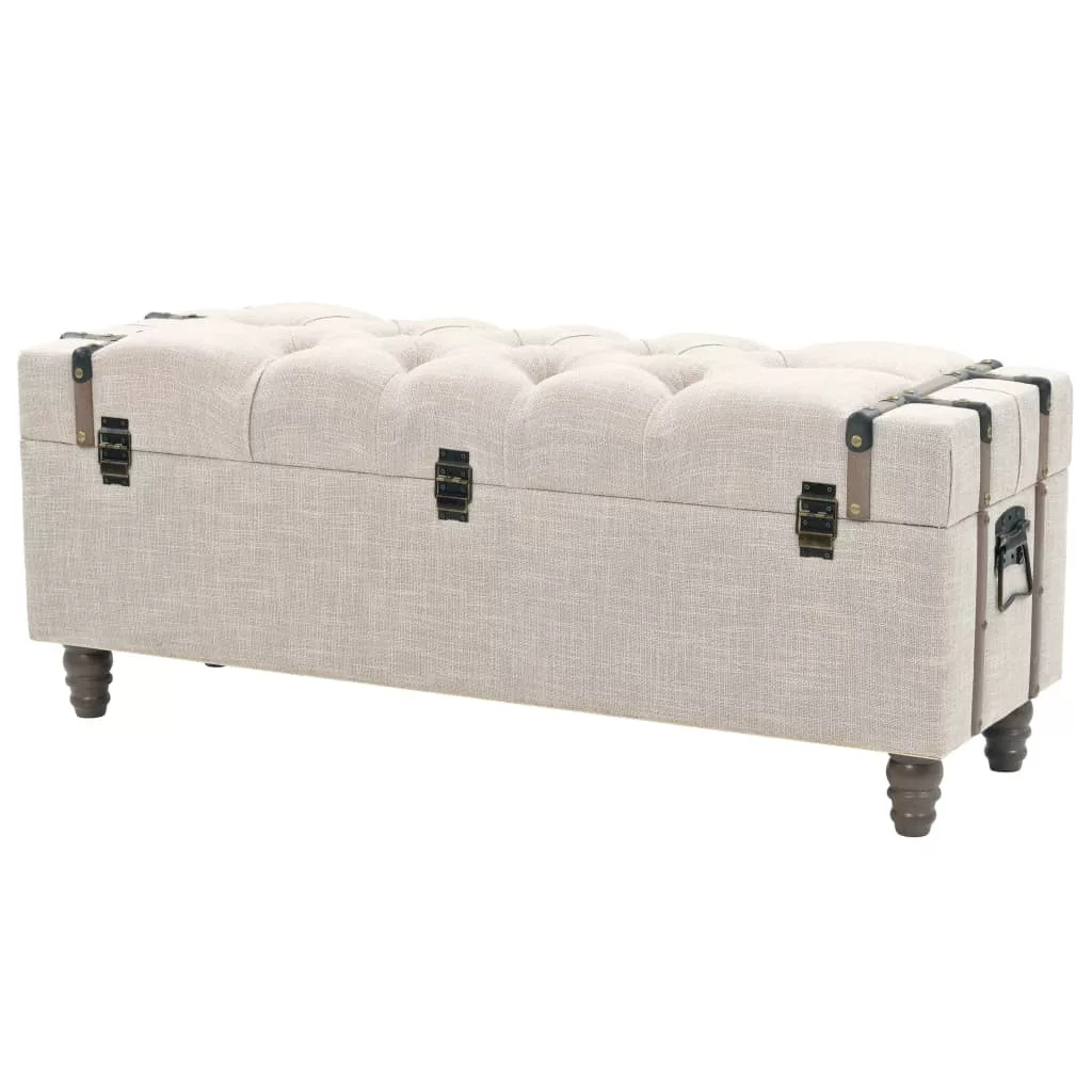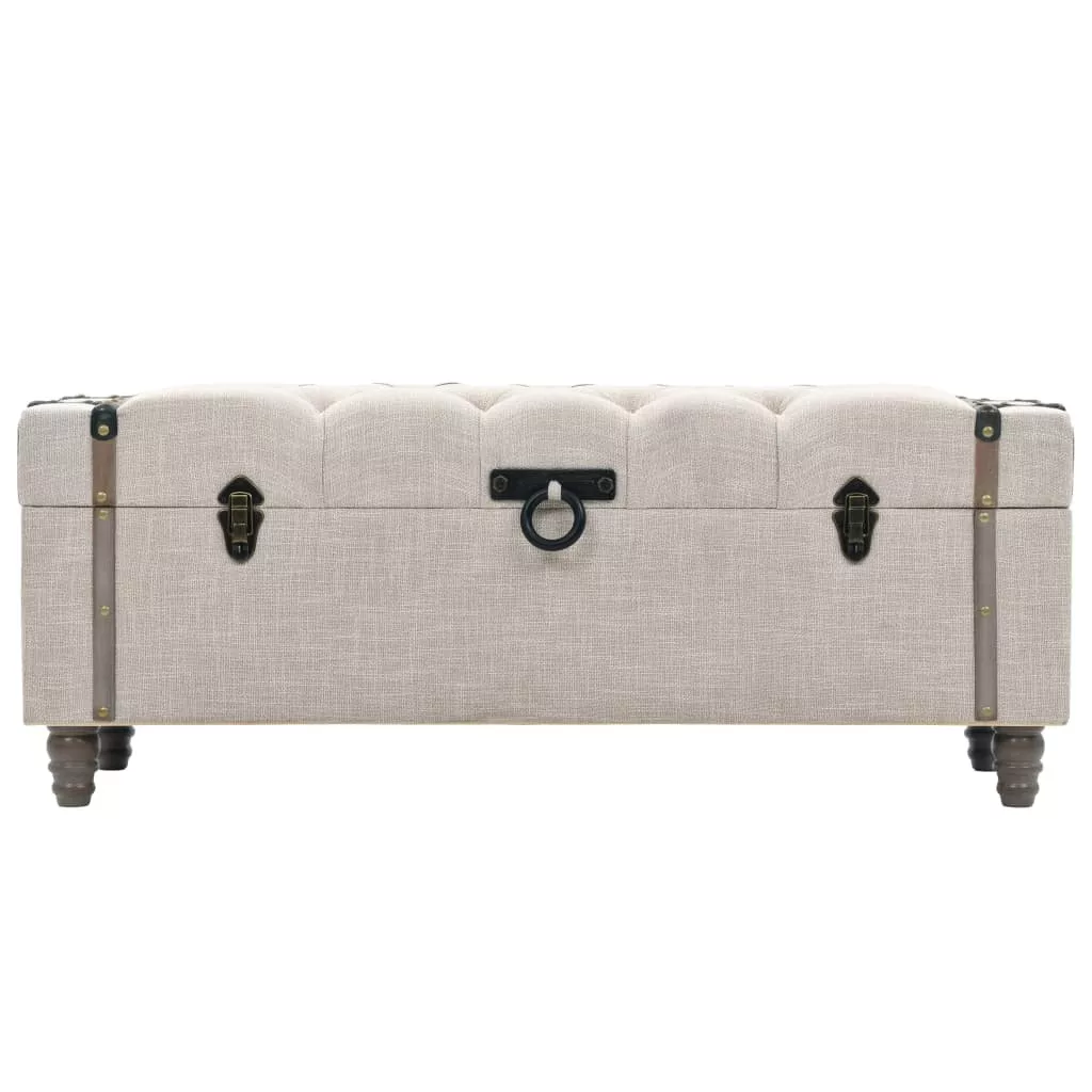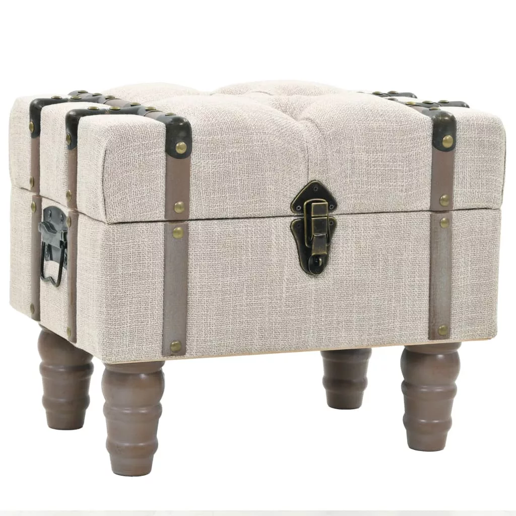 A tárolópadok tömör fenyőből készültek. Kipárnázott ülőfelületük modern szövetkárpitot kapott, és masszív acéllábakkal lettek ellátva. Bőséges helyet kínálnak különféle holmik elérhető közelségben történő tárolásához. Ha szükséges, a 2 kisméretű puff akár a nagyobb ládába helyezhető. Strapabíró fogantyúinak hála a tárolópadok könnyen mozgathatók és bármely szobába betehetők. A szállítás 3 db tárolópadból áll.