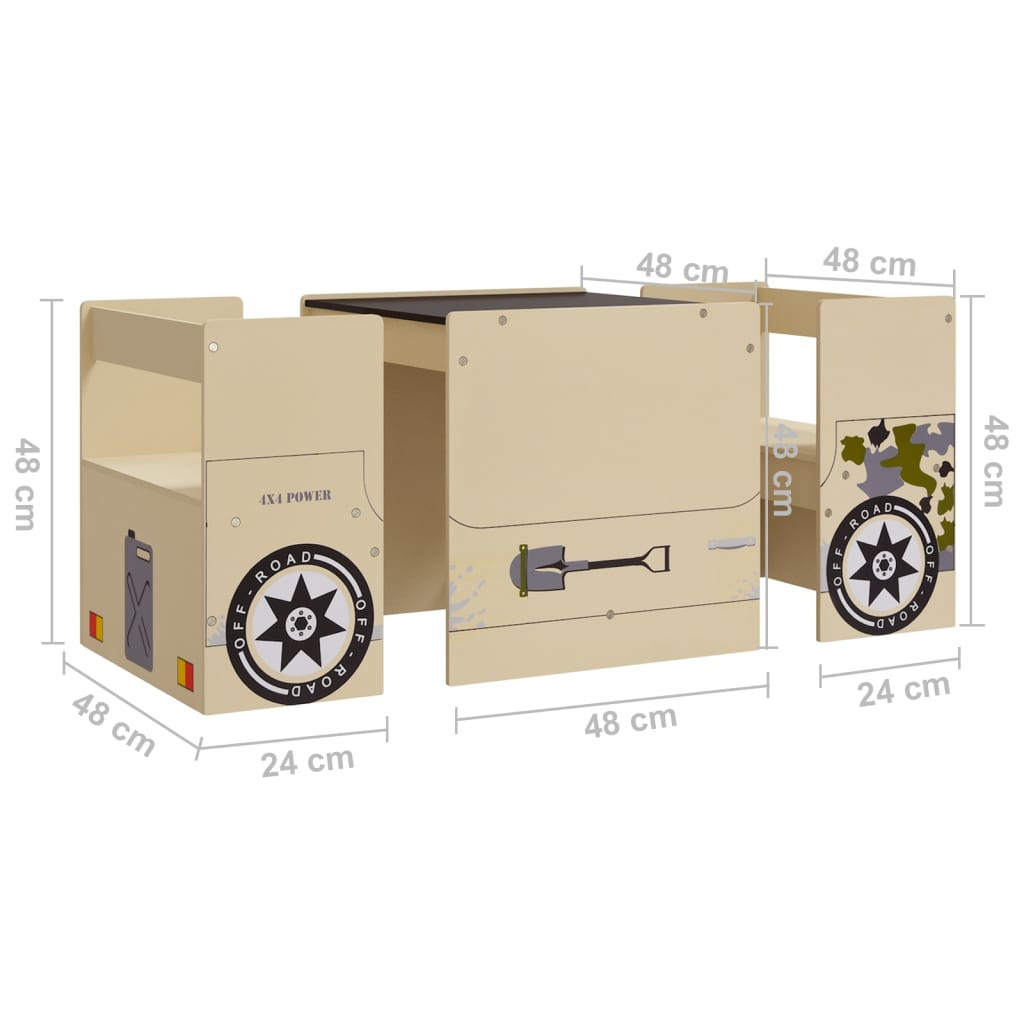 Ez a terepjáró formájú gyerek-ülőgarnitúra két székből és egy táblás asztallapból áll. Garantáltan elbűvöli gyermekét, aki imádni fogja.