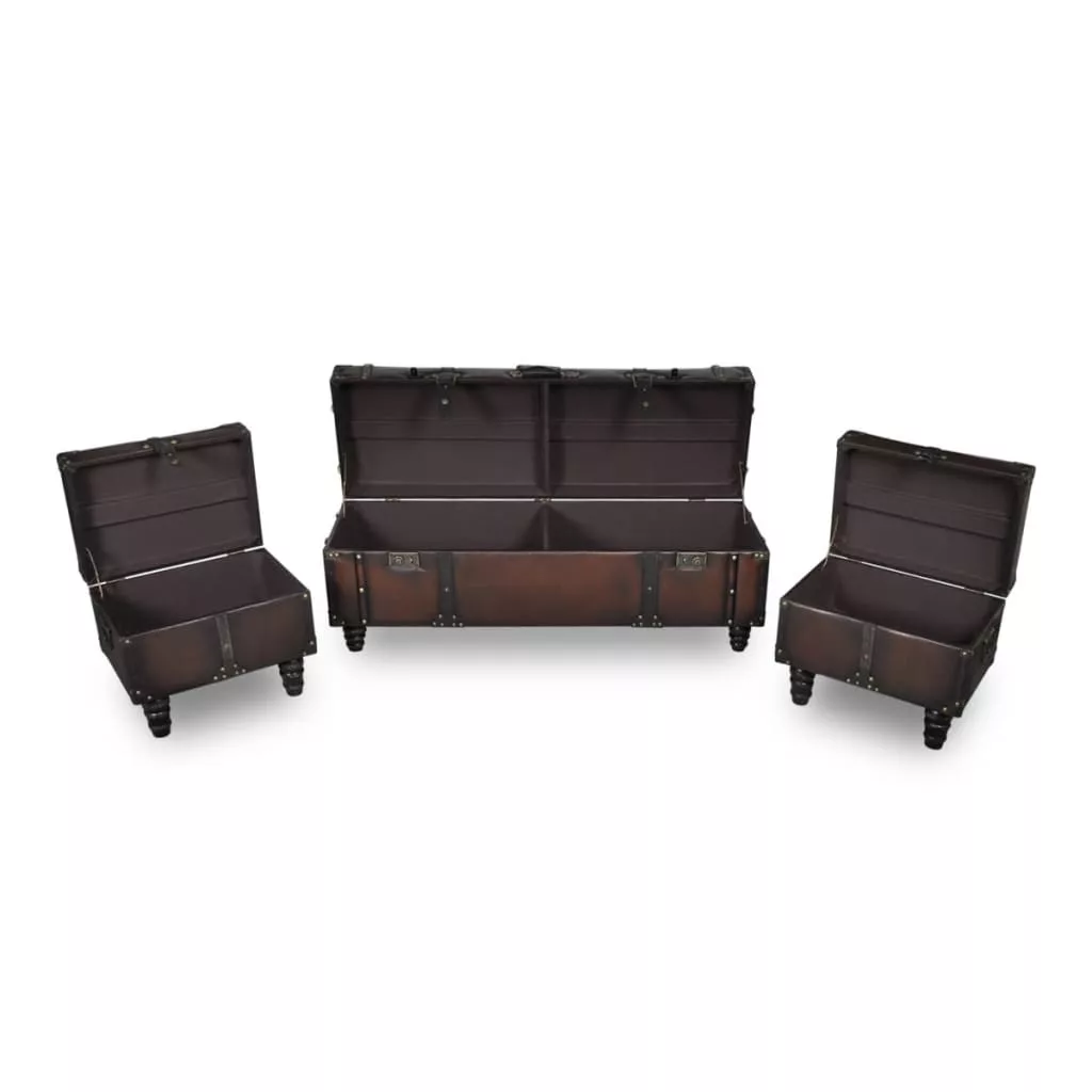Ez a tárolópad szett egy hosszú tárolópadból és 2 db lábzsámolyból áll. Elegáns stílusának és gazdag, sötétbarna felszínének köszönhetően ideális választás, mely remekül kiegészíti otthonának lakberendezését.