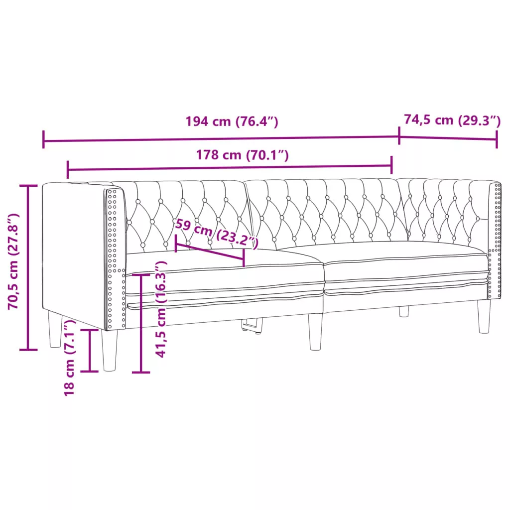 - Chesterfield stílus: A klasszikus gombokkal tűzdelt háttámlával és karfákkal, valamint az egységes hát- és karmagassággal a kanapé minden helyiséget feldob, stílust és kényelmet biztosítva.