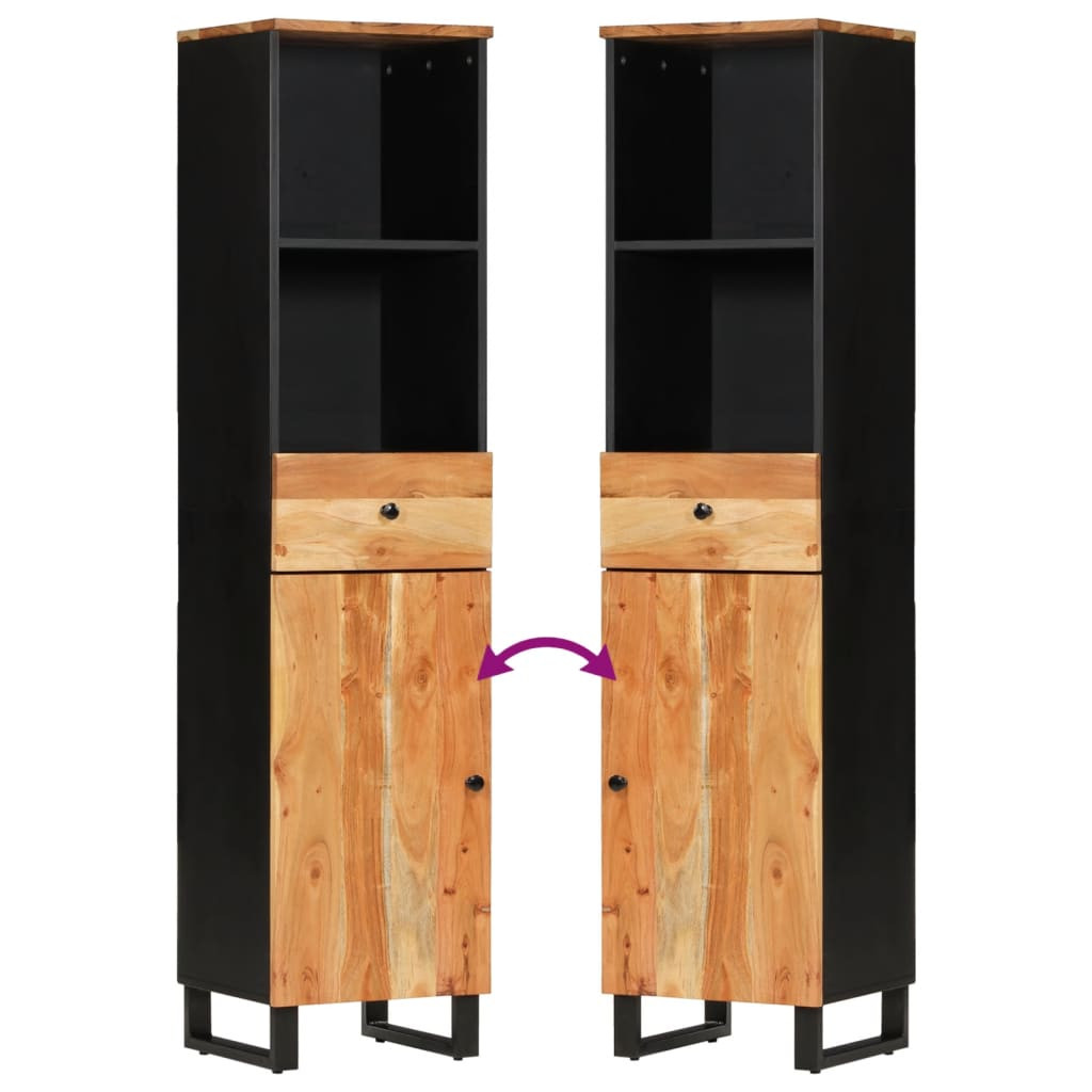 - Tömör akácfa: A szekrény tömör akácfából és szerelt fából készült. A tömör akácfa egy gyönyörű, természetes anyag. Az akácfa egy trópusi keményfa, amely sűrű erezetű, masszív és tartós.