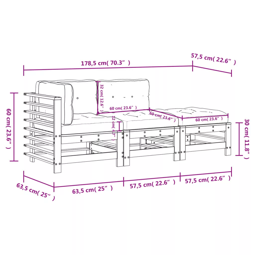 - Középső kanapé mérete: 57,5 x 63,5 x 60 cm (Ho x Szé x Ma)