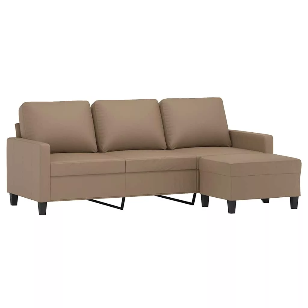 vidaXL 3 személyes kávészínű műbőr kanapé lábtartóval 180 cm