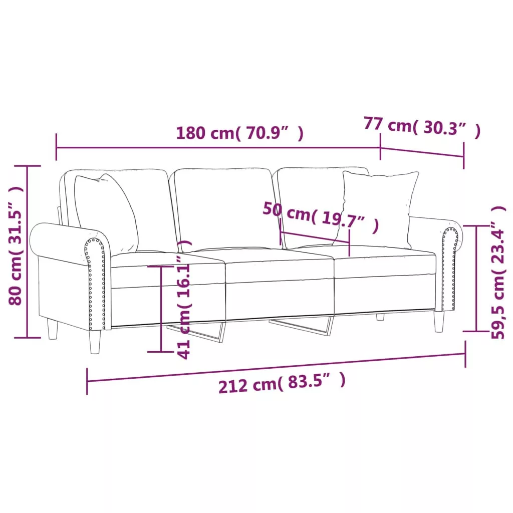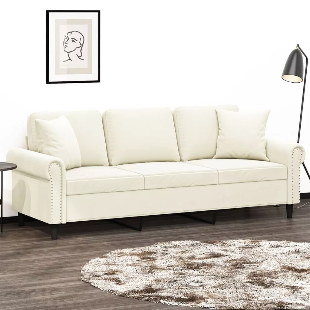 Ez a 3 személyes kanapé, mely modern dizájnjával és díszpárnáival tűnik ki, kiváló helyet kínál beszélgetéshez, tévézéshez vagy egyszerűen csak pihenéshez.