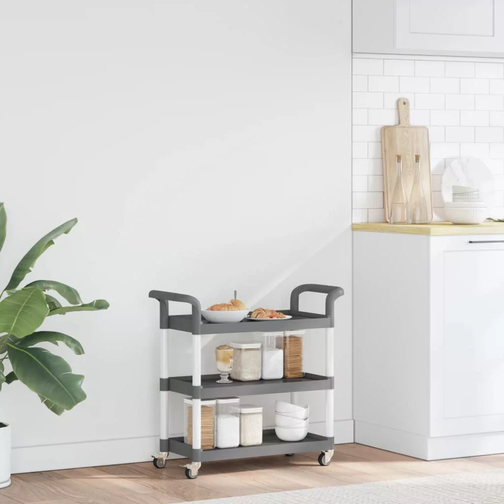 - Bőséges tárolóhely: A 3 polccal rendelkező konyhai kocsi elegendő helyet biztosít harapnivalók, italok, vázák, gyümölcstálak vagy egyéb dísztárgyak elhelyezésére.
