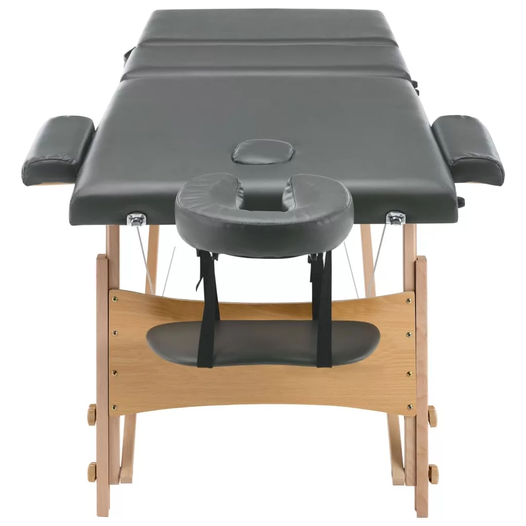A háromzónás, összecsukható, favázas masszázsasztal professzionális és otthoni használatra is alkalmas.