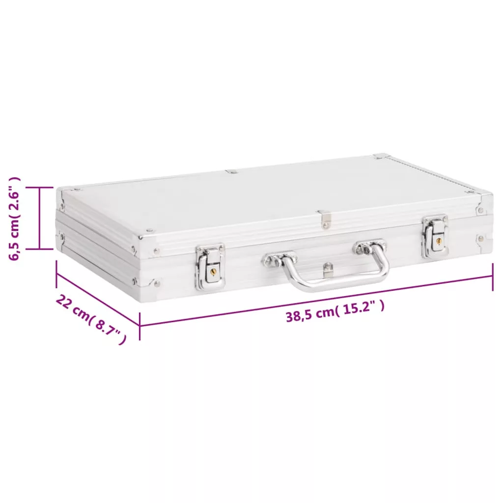 - Hordtáska: A pókerkészlethez egy elegáns alumínium hordtáska is tartozik, amelyben minden darab együtt és rendezetten tárolható. A tok könnyű súlyú és hordozható, így használaton kívül könnyen tárolható, és egyszerűen átvihető az egyik helyszínről a másikra.
