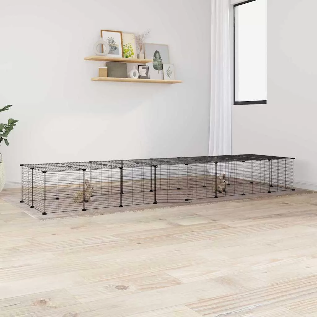 vidaXL 36 paneles fekete acél kisállatketrec ajtóval 35 x 35 cm
