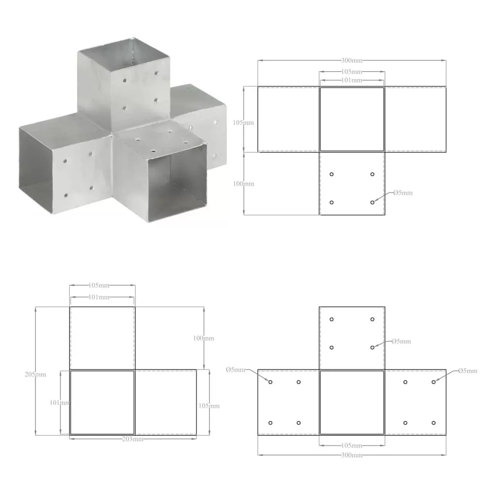 A horganyzott tartó összeköti és stabilan tartja a gerendákat. Az összes csatlakoztató gyári lyukakkal lett ellátva. Ez a gerendatartó 4 négyzet alakú, 101 mm-es fa gerenda számára való.