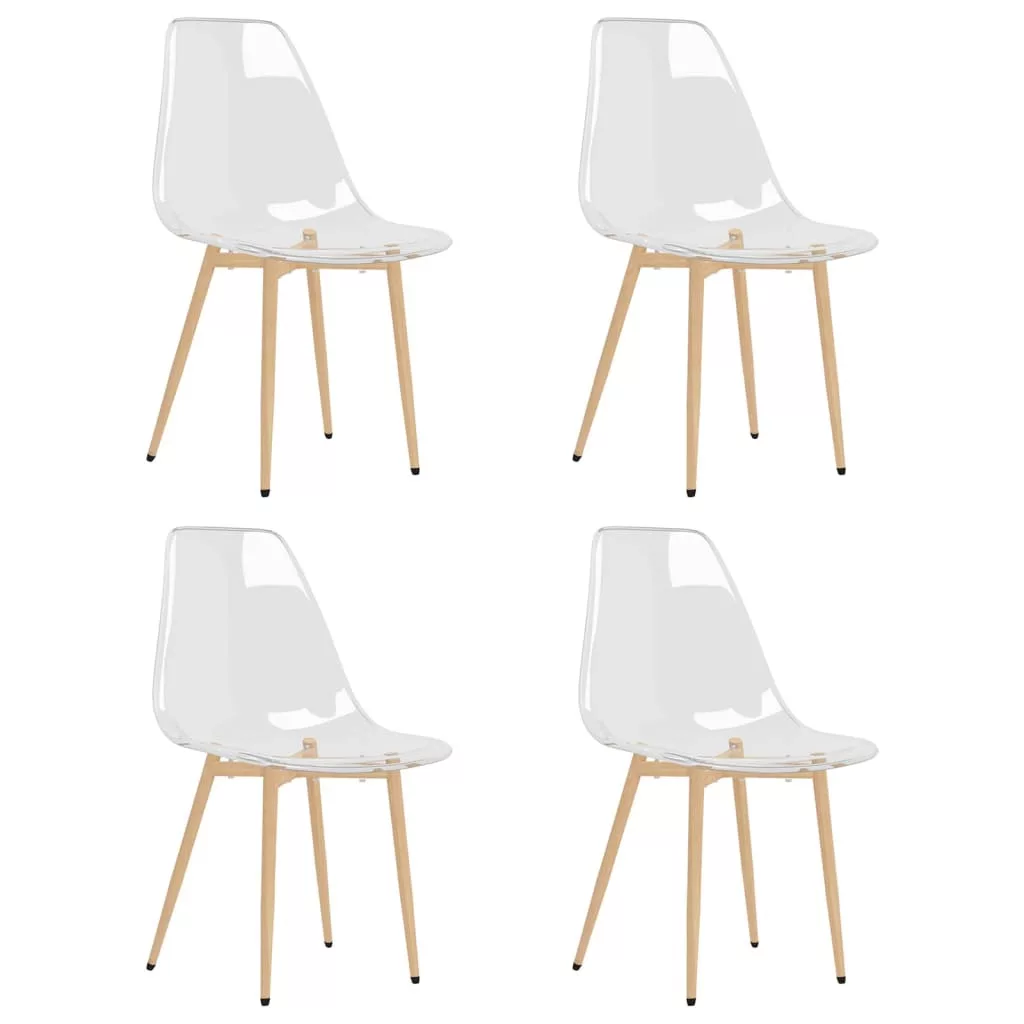 Az étkezőszék átlátszó ülőfelülete sima vonalakkal rendelkezik, amelyek különleges megjelenést kölcsönöznek neki. Ezek az étkezőszékek PET-ből készültek, így könnyen tisztíthatók. Ezenkívül a fémlábak extra stabilitást kölcsönöznek a konyhai székeknek. Az ergonomikusan ívelt háttámlával kialakított szék a lehető legjobb kényelmet biztosítja. Eközben a lábpárnák megakadályozzák a padló karcolódását, valamint további stabilitást nyújtanak.