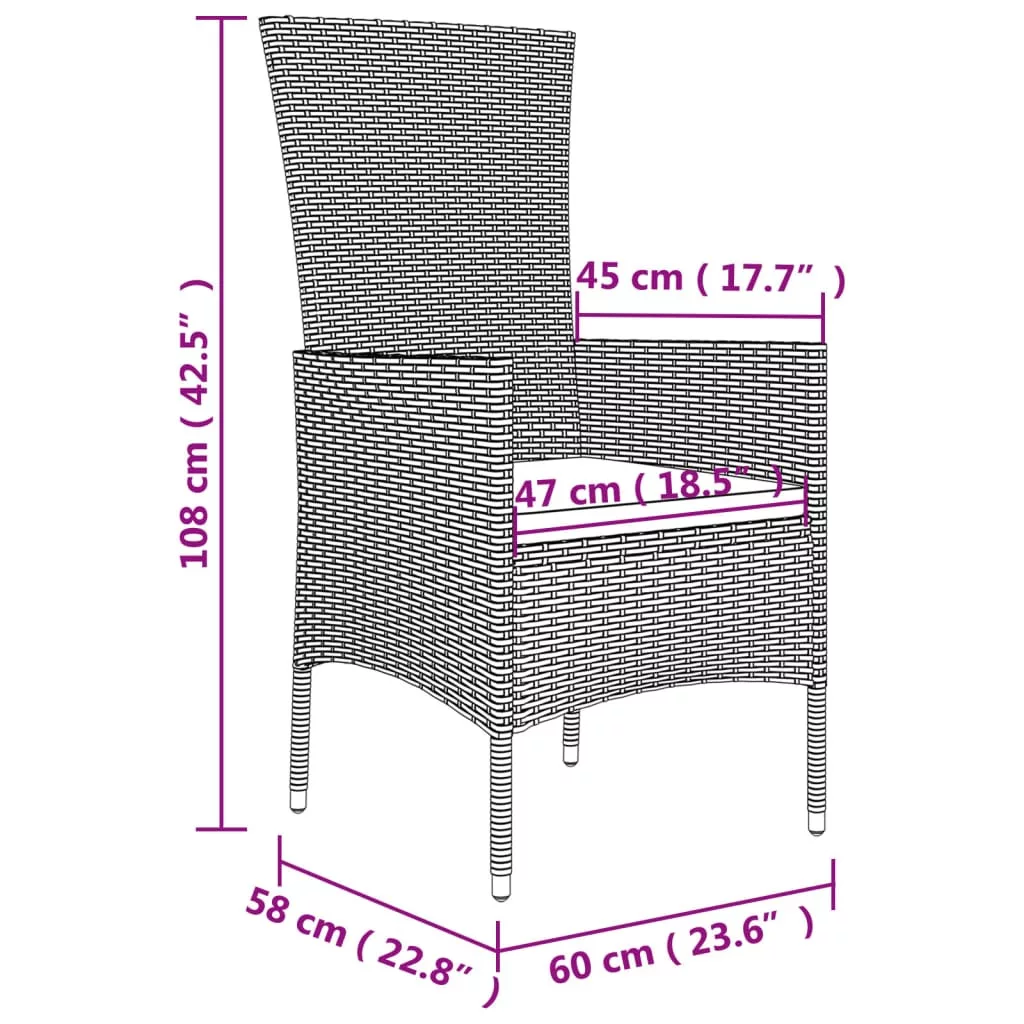 - Anyaga: PE-rattan, acél, tömör akácfa olajos felületkezeléssel