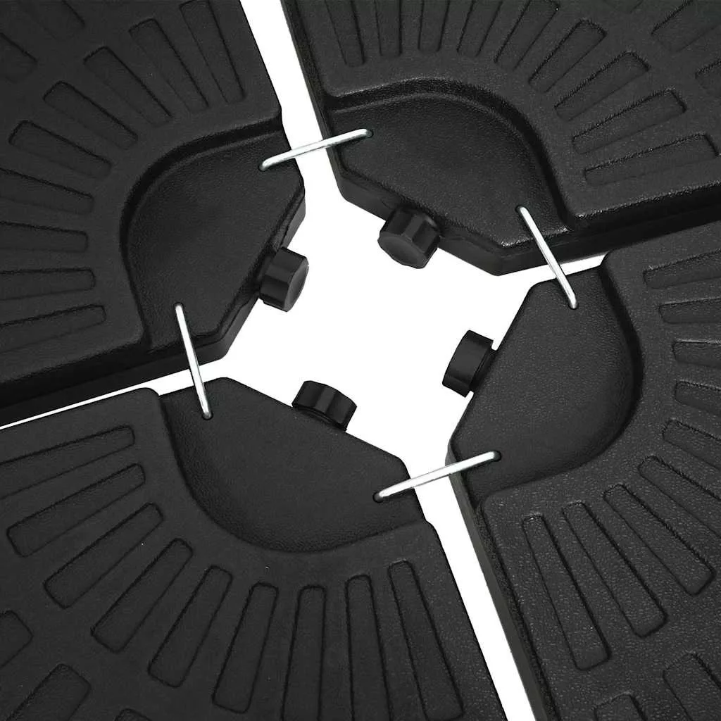 A tartós HDPE műanyagból készült talpszett rozsdamentes, és éveken keresztül használható. 4 különálló darabból áll, és körülbelül 60 liter vízzel, vagy akár 72 kg homokkal lehet feltölteni. Töltés nélkül a napernyőtalp könnyű, így a fogantyús kialakításának köszönhetően könnyen hordozható és tárolható.