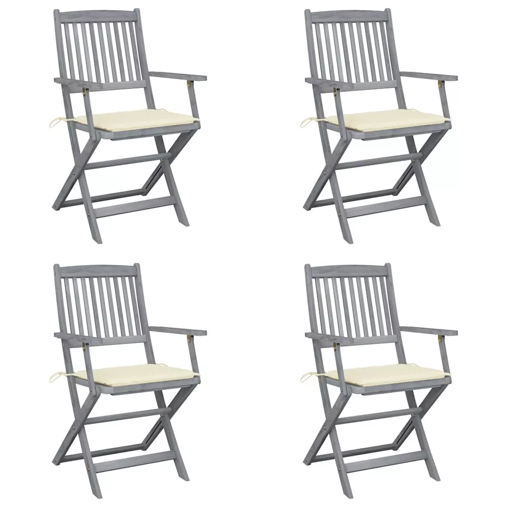 Ezek az étkezőszékek tömör akácfából, egy trópusi keményfából készültek, így időjárásállóak és évekig használhatóak. A tömör akácfa nem csupán erős, elbírva a ránehezedő súlyt, de ellenáll a kopásnak is. Az antikolt szürke felület nedves ruhával könnyen tisztítható. A székek a helytakarékosság érdekében használaton kívül összecsukhatóak. A mellékelt párnák további kényelmet nyújtanak pihenés vagy étkezés közben. A párnák mindegyike két fűzővel lett ellátva, amivel a székhez rögzíthetőek.