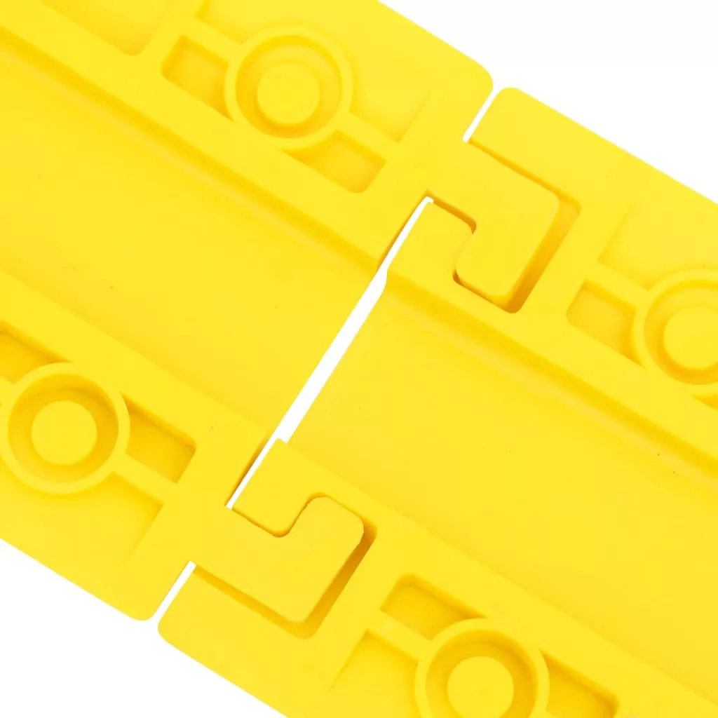A kábeltaposó PVC-ből készült, így strapabíró és tartós. A rámpa élénk sárga színű, hogy még könnyebben látható legyen. Megvédi a kábeleket, maximális teherbírása pedig 10 tonna. A kábelek egyszerűen behelyezhetőek vagy kivehetőek a felső takarót felhajtva. Az elemes kialakításnak köszönhetően több kábeltaposó kapcsolható egymáshoz, amennyiben hosszabb kábelszakaszhoz szükséges a védelem.