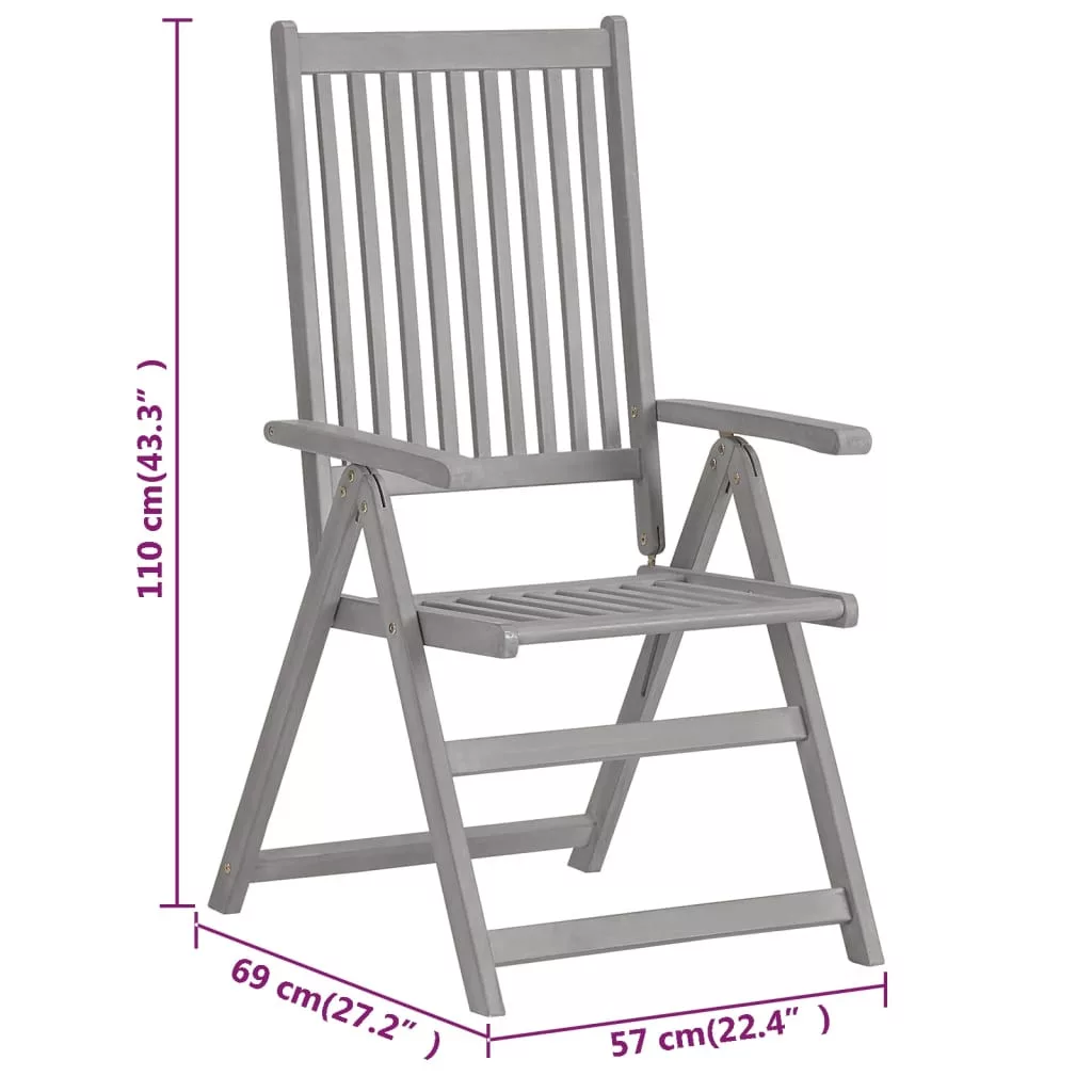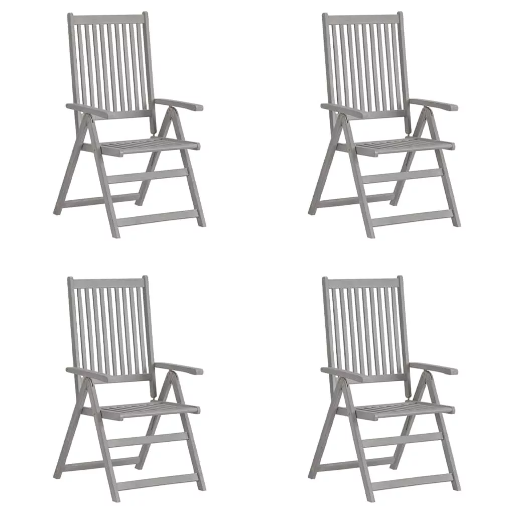 Ezek a karosszékek tömör akácfából készültek, amely egy sűrű erezetű keményfa, valamint szürke felületet kapott. Ezek a gyönyörű kialakítású kültéri székek stabilak, tartósak és figyelemfelkeltőek. A szék háttámlája 5-féle pozícióba dönthető, így mindig a legkényelmesebb helyzetbe állíthatja, saját igényeinek megfelelően. Ezek a székek tökéletesek a családdal való étkezésekhez, vagy egyszerűen a kertben való kikapcsolódáshoz.