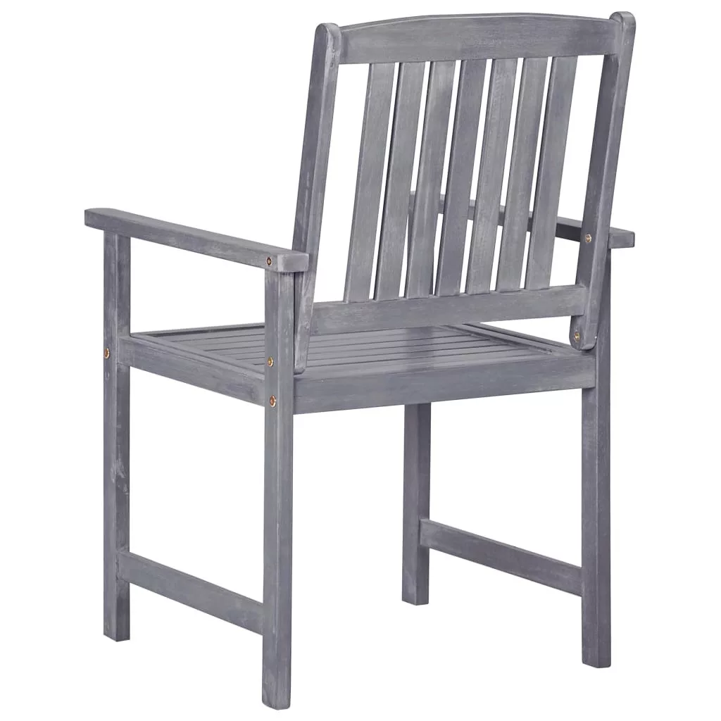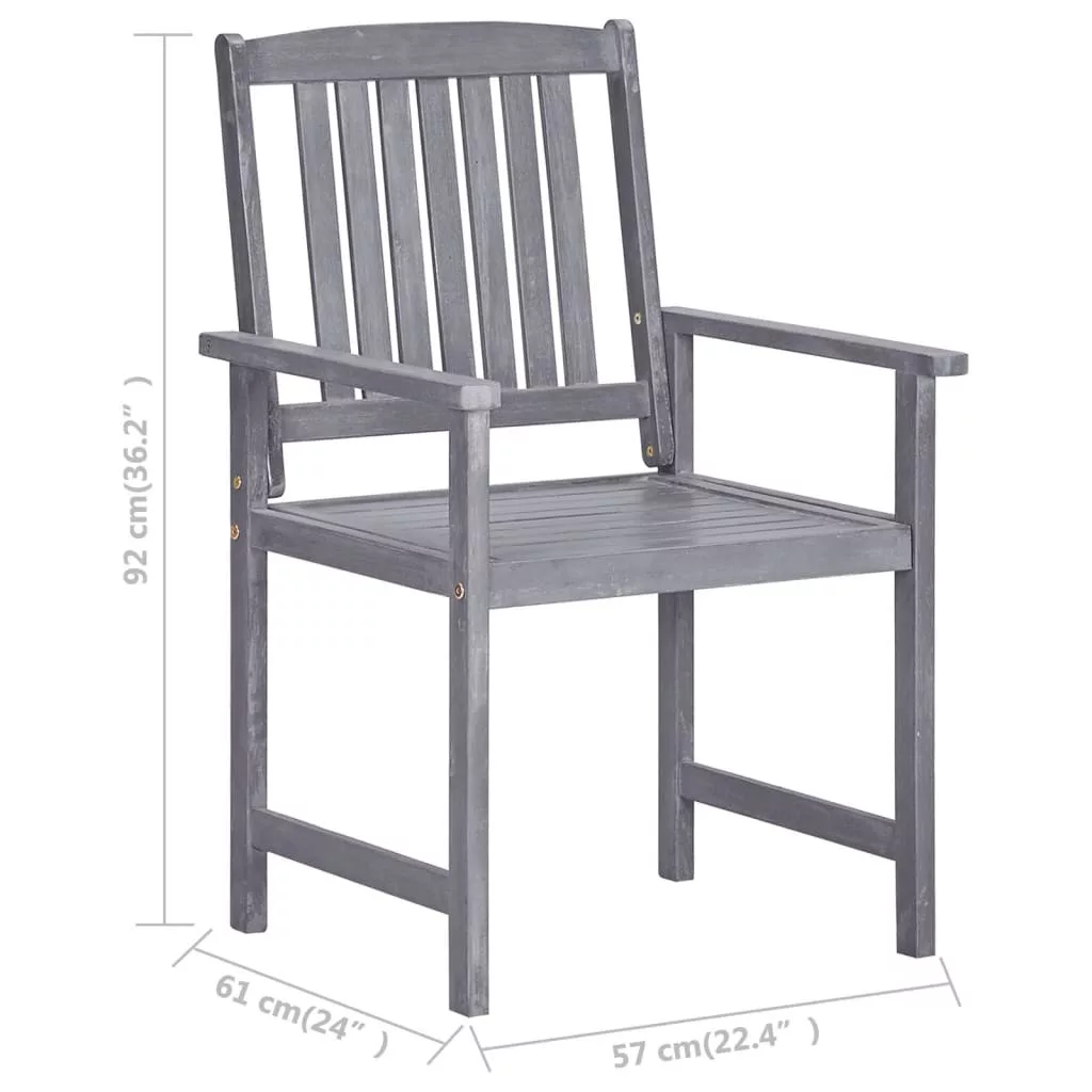 Ez a kerti tömör akácfából, egy sűrű erezetű keményfából készült szürke antikolt felülettel. A tömör akácfa elég erős, hogy elbírja a ránehezedő súlyt, és időtálló is. Ez a fa székszett stabil, tartós és időjárásálló. A falábak kiváló stabilitást biztosítanak. Emellett a szék felülete nedves ruhával könnyen tisztítható.