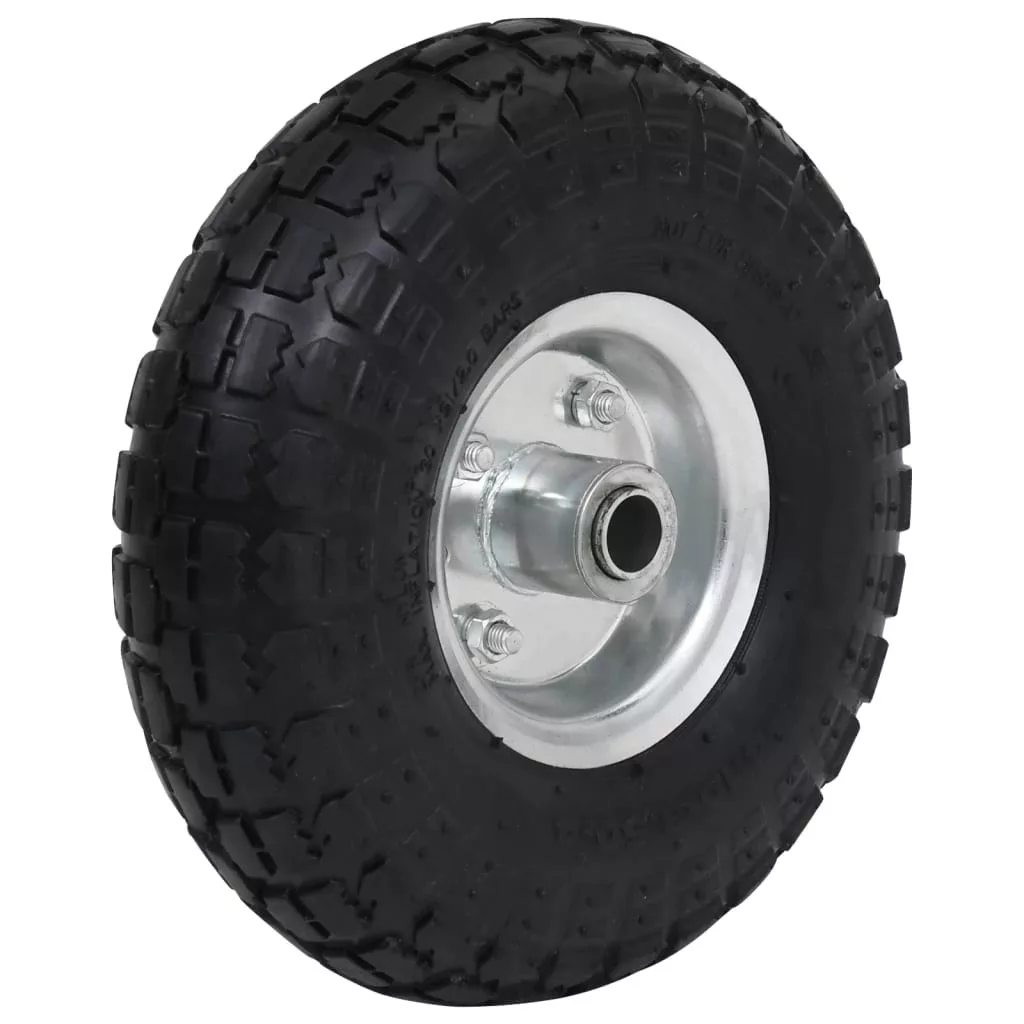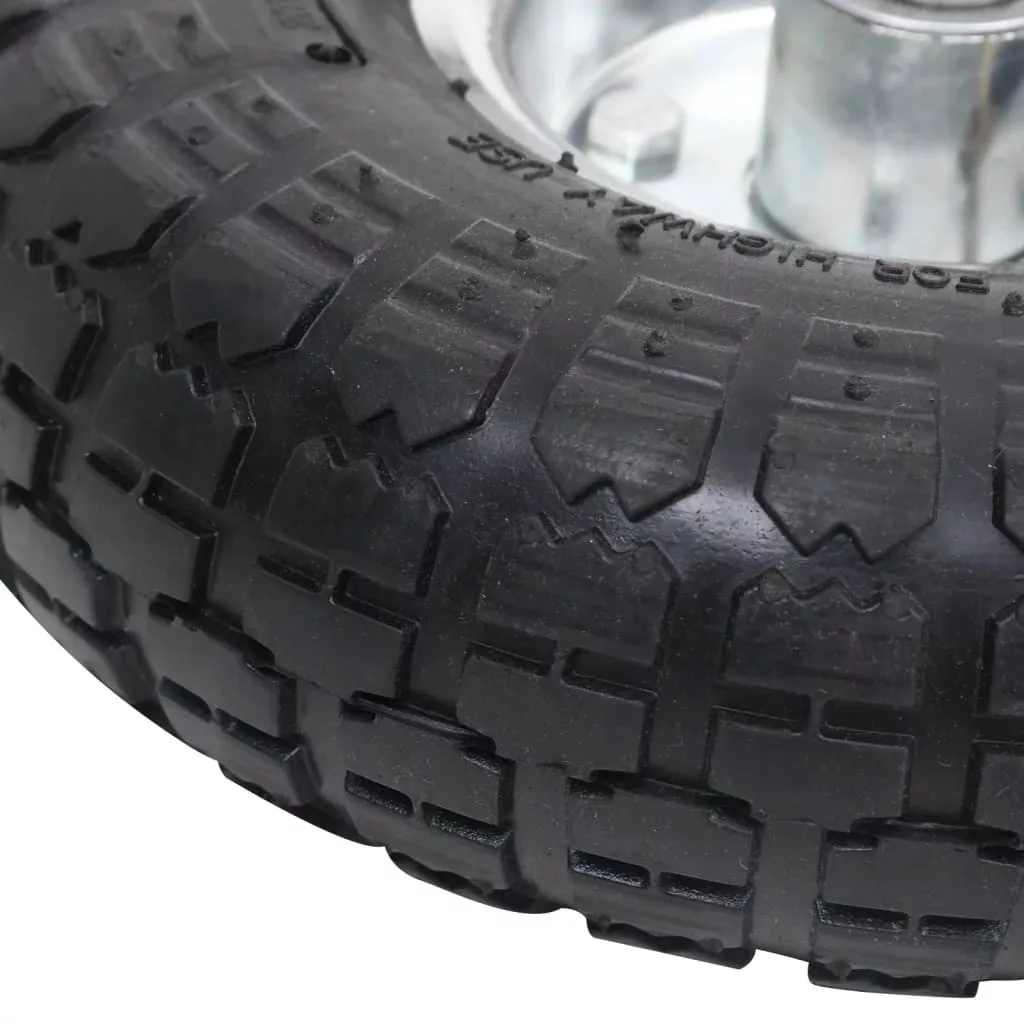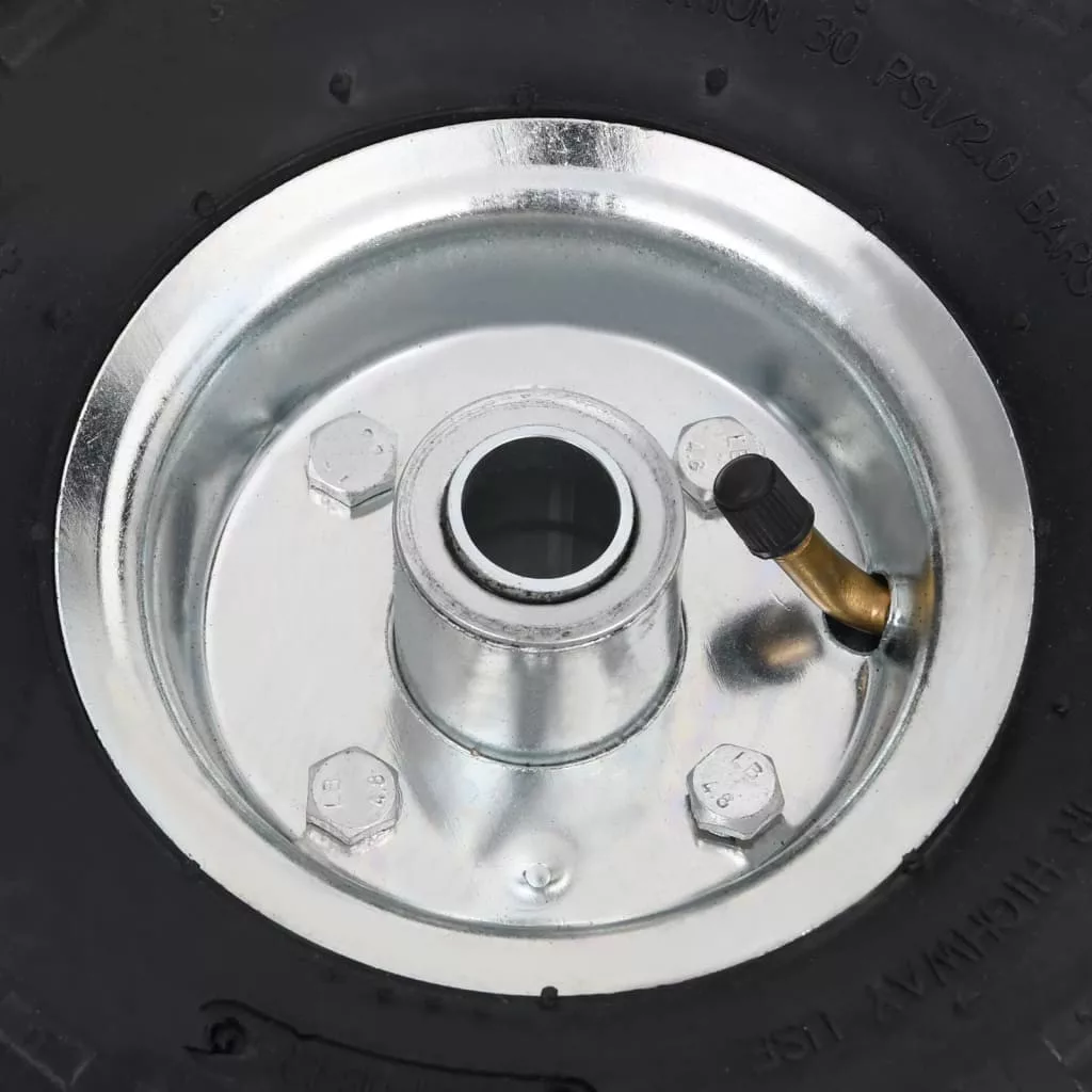 A pneumatikus abroncsok strapabíró, kopásálló gumiból készültek, és speciális futófelület-kialakítással rendelkeznek, ami nagyobb sebességnél is fokozott tapadást biztosít. A keréktárcsák erős fémből készültek. A pótkocsi kerekek univerzális méretűek, és könnyen felszerelhetők targoncákra, szervizkocsikra stb.