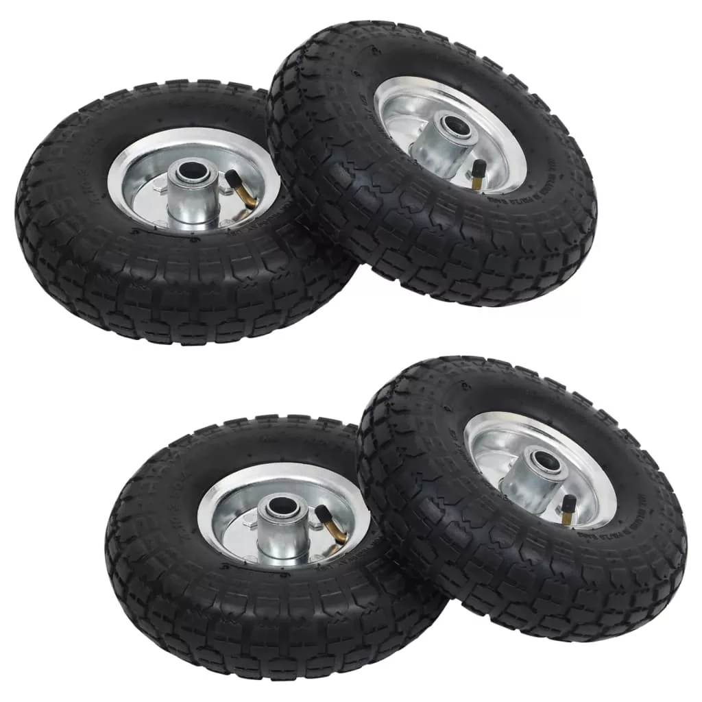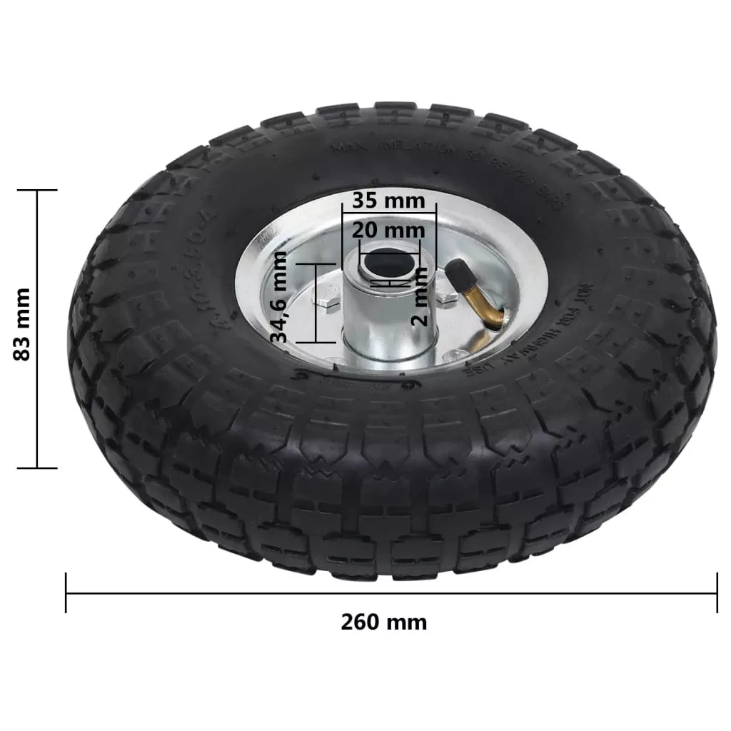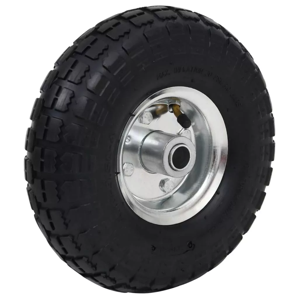 A pneumatikus abroncsok strapabíró, kopásálló gumiból készültek, és speciális futófelület-kialakítással rendelkeznek, ami nagyobb sebességnél is fokozott tapadást biztosít. A keréktárcsák erős fémből készültek. A pótkocsi kerekek univerzális méretűek, és könnyen felszerelhetők targoncákra, szervizkocsikra stb.