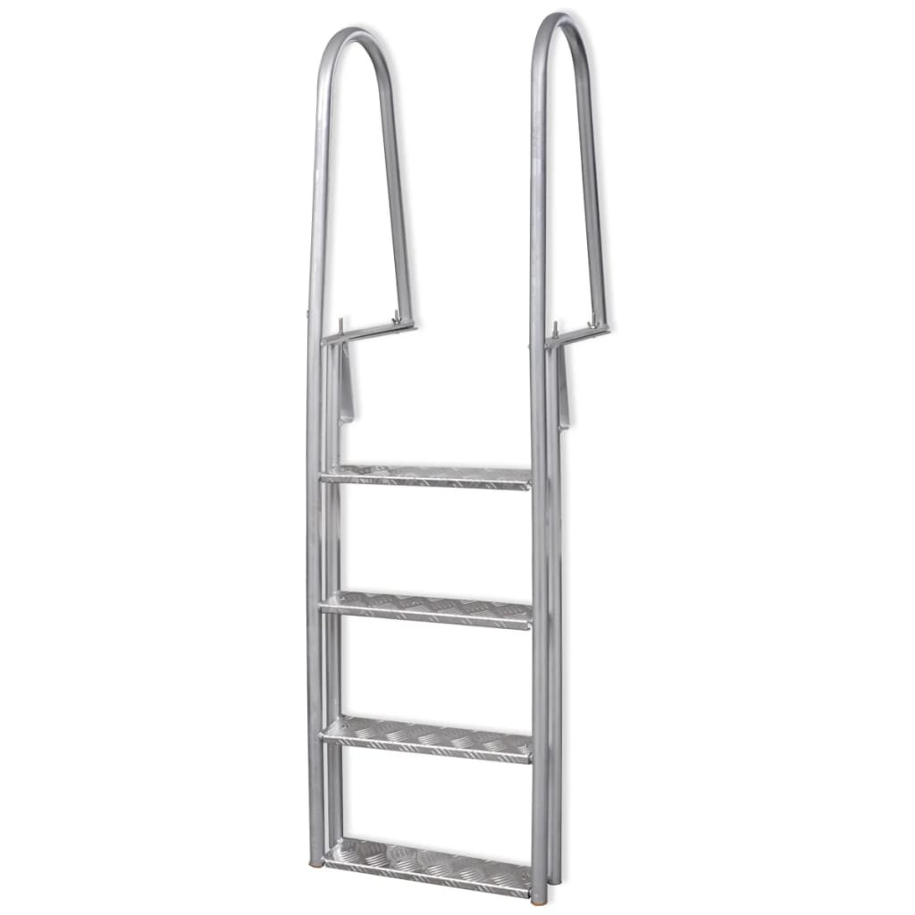 4-lépcsős létránk segítségével biztonságosan erőlködés nélkül ki/be szállhat a dokkba vagy a medencébe. Ez a strapabíró és időjárásálló móló létra masszív alumíniumból készült. Maximális teherbírása 100 kg és kültéri és beltéri használatra is egyaránt ideális.