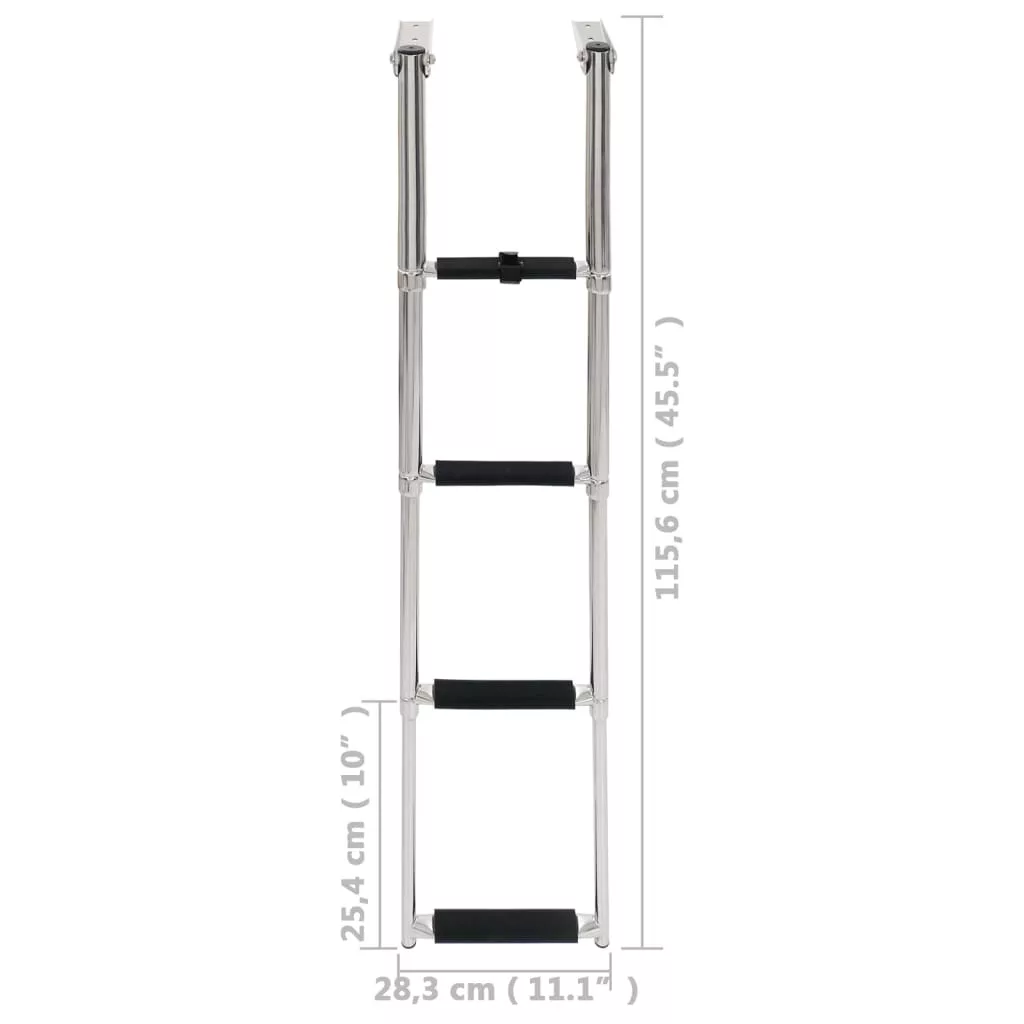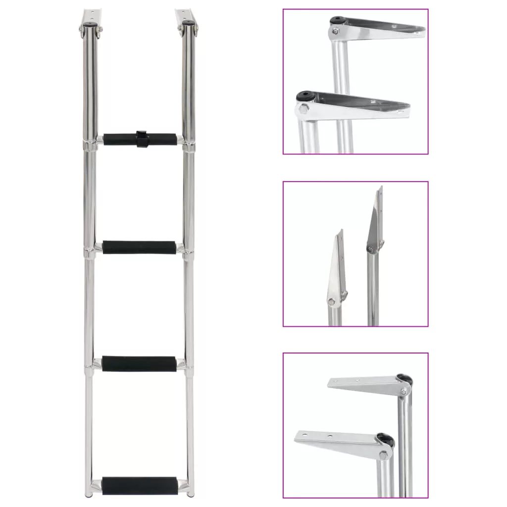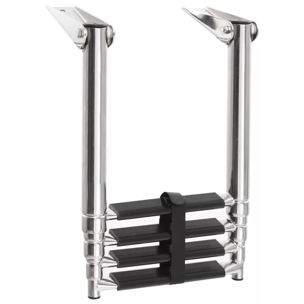 A különleges teleszkópos kialakításnak köszönhetően a létrát gyorsan és könnyen lehet kinyitni, megkönnyítve a biztonságos beszállást. Minden lépcsőfok csúszásgátló felületű, ami maximális mértékben garantálja a biztonságot. A nagy szilárdságú rozsdamentes acélból készült hajólépcső maximálisan tartós, és nagy, 250 kg-os súlyt képes megtartani. Használaton kívül pánttal rögzítheti a lépcsőket. A szerelési kiegészítők alaptartozékok.