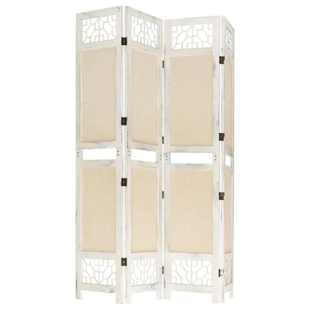 Ez a szabadon álló, elegáns 4 paneles paraván dekorációként vagy térelválasztóként is használható. A hálószobában elkülönített, privát öltözőhelyet teremthet vele, vagy leválaszthat egy részt bármely helyiségből. Emellett ez a paraván erős császárfából és MDF-vázból készült, valamint tartós szövetborítást kapott. Használaton kívül a helytakarékosság érdekében egyszerűen összehajtható.