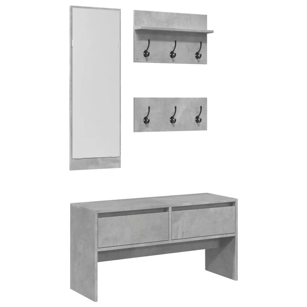 - 3 az 1-ben előszobai tárolóegység: Ebben a szettben minden megtalálható, amire szüksége van ahhoz, hogy a bejáratát rendezetten tartsa. Tartalmaz egy fiókos cipőpadot, egy tükröt, és két ruhatartót a cipők, kabátok, és kiegészítők tárolására.