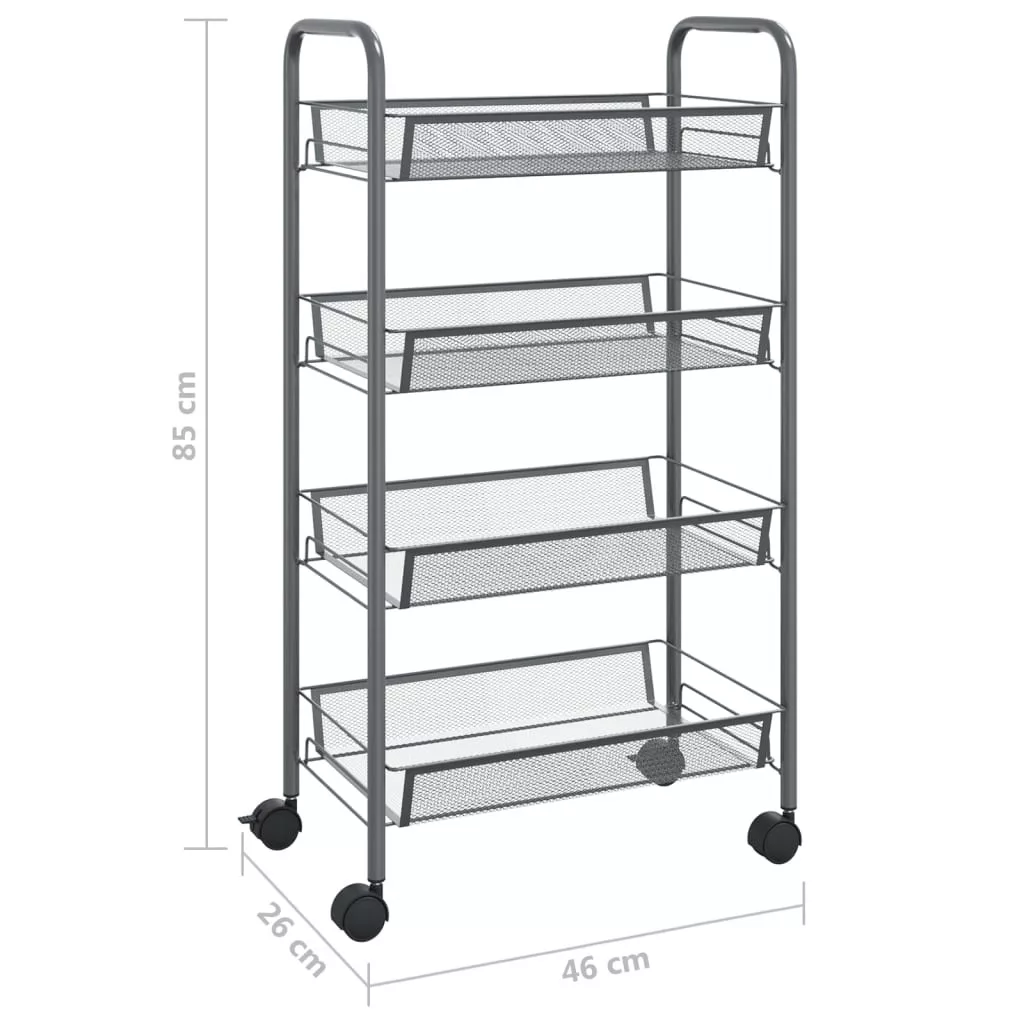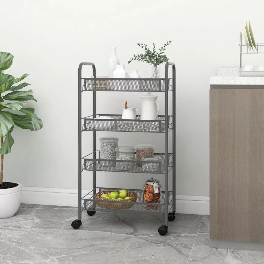 Ez az otthoni kerekes kocsi vasvázzal rendelkezik, így erős szerkezetű és tartós. A helytakarékos kocsi 4 kerékkel van ellátva, melyek közül kettő fékkel van felszerelve, a könnyű mozgatás és megállítás érdekében. Az erős és kivehető rácsos kosarak extra tárolóhelyet biztosítanak, és segítenek a hely maximális kihasználásában. A kocsi ideális játékok, kulcsok, étel és hasonlók tárolására.
