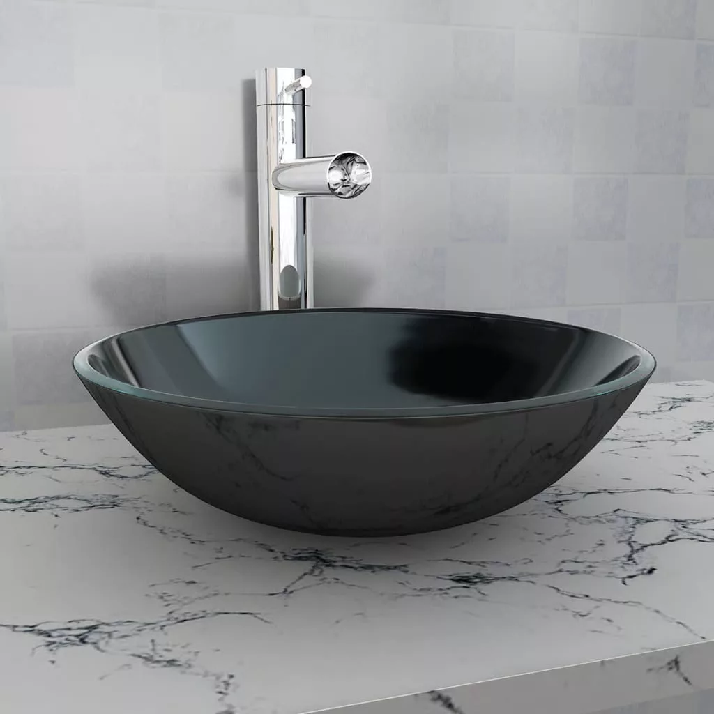 Ez a kiváló minőségű edzett üvegből készült, fekete mosdókagyló elegáns megoldás bármilyen fürdőszobába, mellékhelyiségbe vagy mosdóba. Pult fölé lehet telepíteni.