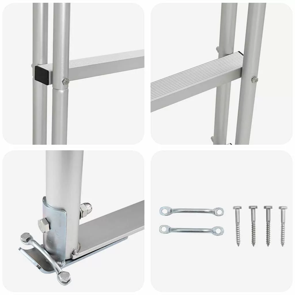 - Beépített alkatrészek: 1 x dokklétra, amit egy csavarhúzó segítségével tudsz összeszerelni. Egy ember simán meg tudja csinálni, és amit össze kell szerelni, az megfelelően le van rögzítve. Ez a gyorsan összeszerelhető dizájn felhasználóbarát, és nem veszélyezteti az erősséget.