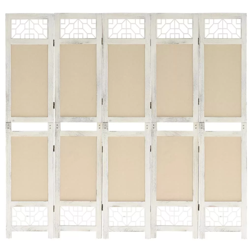 Ez a szabadon álló, elegáns, 5 paneles paraván dekorációként vagy térelválasztóként is használható. A hálószobában elkülönített, privát öltözőhelyet teremthet vele, vagy leválaszthat egy részt bármely helyiségből. Emellett ez a paraván erős császárfából és MDF-vázból készült, valamint tartós szövetborítást kapott. Használaton kívül a helytakarékosság érdekében egyszerűen összehajtható.