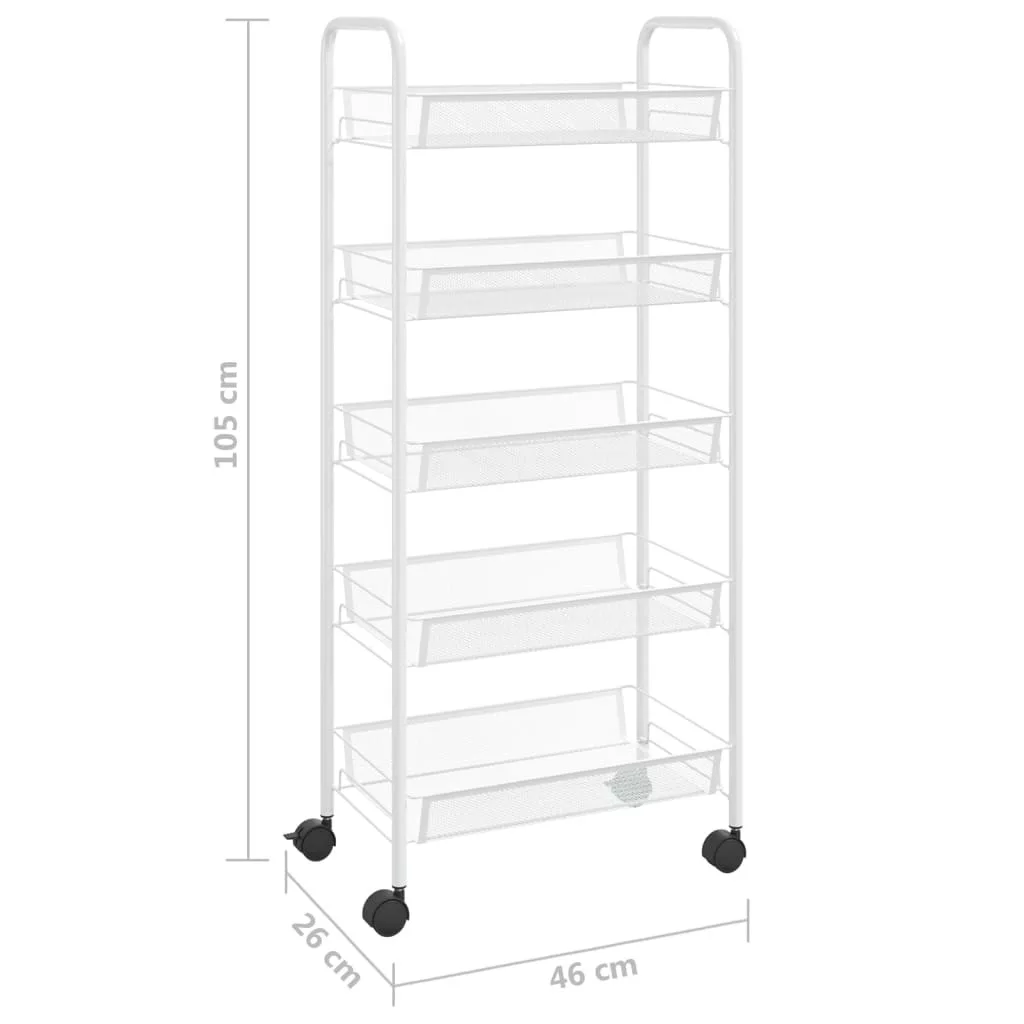 Ez az otthoni kerekes kocsi vasvázzal rendelkezik, így erős szerkezetű és tartós. A helytakarékos kocsi 4 kerékkel van ellátva, melyek közül kettő fékkel van felszerelve, a könnyű mozgatás és megállítás érdekében. Az erős és kivehető rácsos kosarak extra tárolóhelyet biztosítanak, és segítenek a hely maximális kihasználásában. A kocsi ideális játékok, kulcsok, étel és hasonlók tárolására.
