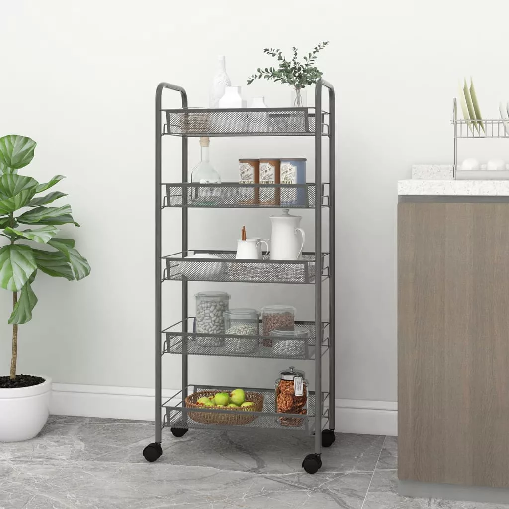 Ez az otthoni kerekes kocsi vasvázzal rendelkezik, így erős szerkezetű és tartós. A helytakarékos kocsi 4 kerékkel van ellátva, melyek közül kettő fékkel van felszerelve, a könnyű mozgatás és megállítás érdekében. Az erős és kivehető rácsos kosarak extra tárolóhelyet biztosítanak, és segítenek a hely maximális kihasználásában. A kocsi ideális játékok, kulcsok, étel és hasonlók tárolására.