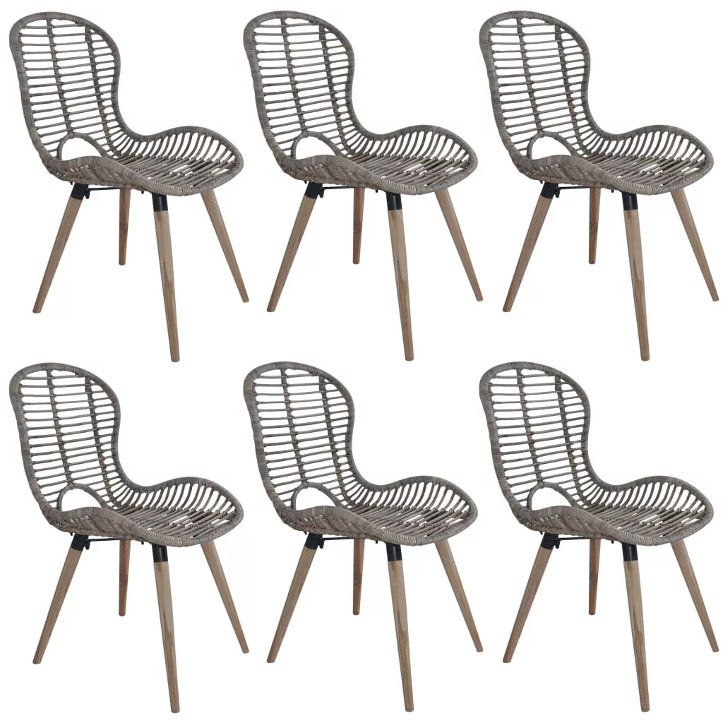 A természetes rattanból készült ülőrésznek és háttámlának köszönhetően a székek vízállóak és könnyen tisztíthatóak. A fából készült lábak biztosítják a bútorgarnitúra darabjainak stabilitását és szilárdságát, ráadásul vintage stílust is kölcsönöznek nekik. Ezek a székek bármilyen miliőhöz illeni fognak; összeszerelésük pedig egyszerű. A szett 6 db étkezőszéket tartalmaz.
