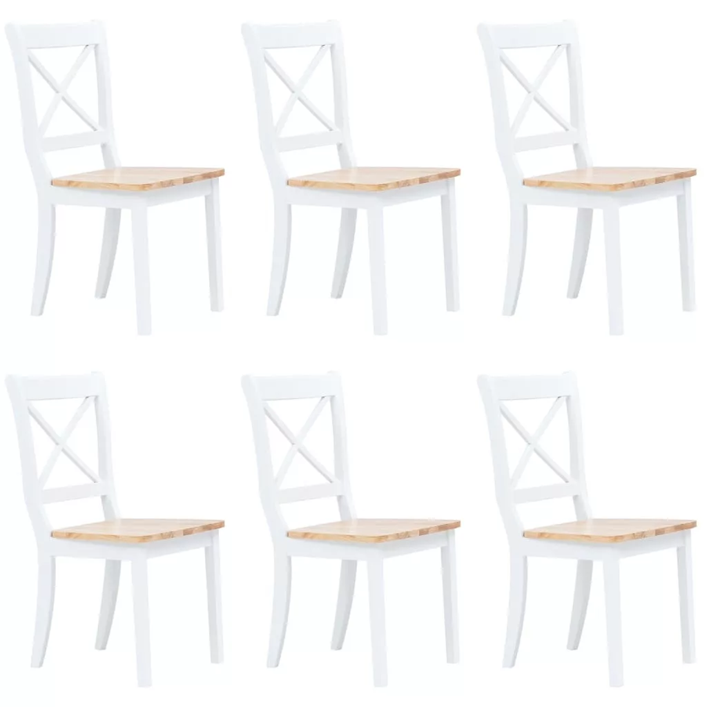 Ez az egyszerű, mégis elegáns dizájnú, fából készült étkezőszék szett 6 darabból áll, és nagyszerű kiegészítője lehet étkezőjének vagy konyhájának.