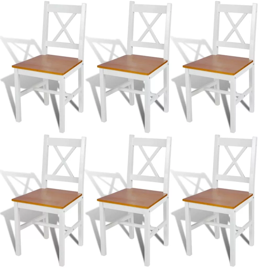 Ez az egyszerű, mégis elegáns dizájnú étkezőszék szett 6 darabból áll, és nagyszerű kiegészítője lehet az étkezőjének, vagy a konyhájának. A székek tömör fenyőfából készültek, amitől rendkívül stabilak és strapabíróak. Sima, festett bevonatuknak hála, könnyen tisztíthatóak. Ergonomikus kialakításuk tovább növeli a komfortérzetet. A szállítmány 6 db étkezőszéket tartalmaz.