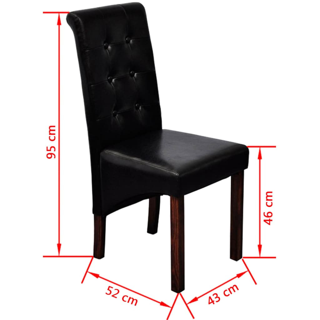 Ez a 6 kényelmes és nagyméretű étkezőszékből álló szett antik stílusú dizájn kapott és ergonomikusan kialakított ülőrésszel és háttámlával rendelkezik. A székek lábai tömör fából készültek, lakkozott a felületük, sötétbarna színűek, és sarkaik le vannak kerekítve a biztonság érdekébe. A székek könnyen karbantarthatóak és tisztíthatóak. Ezeknek az étkezőszékeknek az ülőfelületük és háttámláik tartós szintetikus bőrrel vannak kárpitozva.