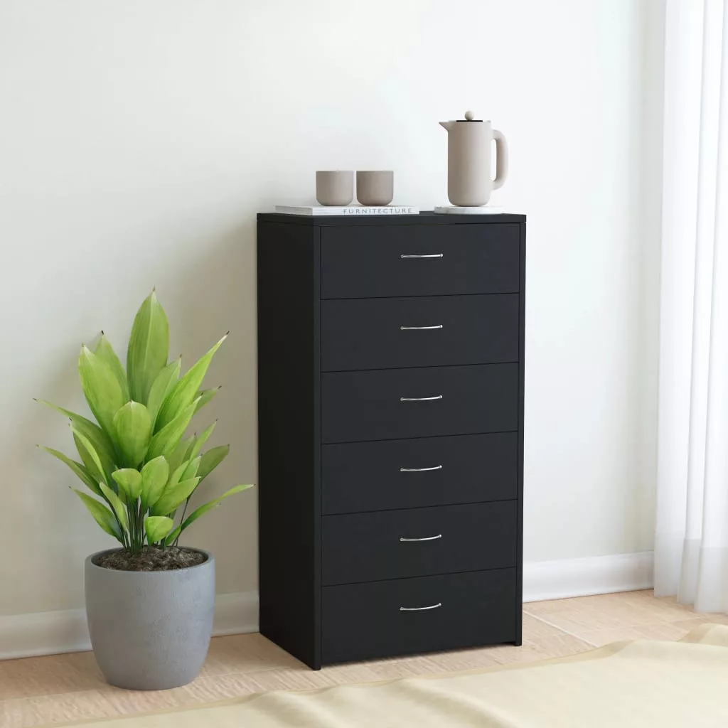 A minőségi szerelt fából készült tálalószekrény rendkívül tartós és erős. A tálalószekrény a 6 fiókjával bőséges tárolóhelyet biztosít. Kézközelben és rendezetten tárolhatja könyveit, multimédiás eszközeit és egyéb személyes tárgyait. Masszív teteje ideális dísztárgyak, képkeretek vagy cserepes növények megjelenítésére.