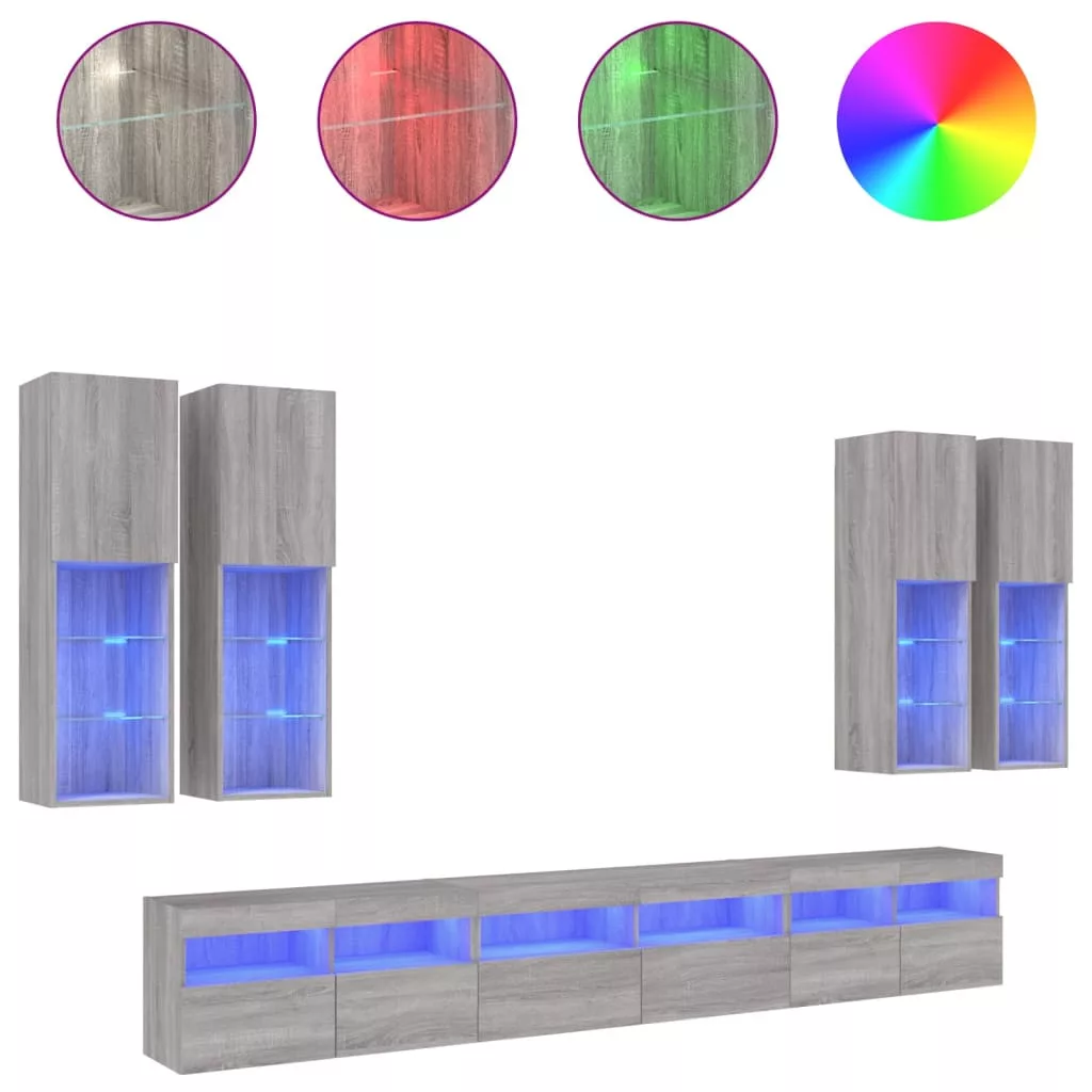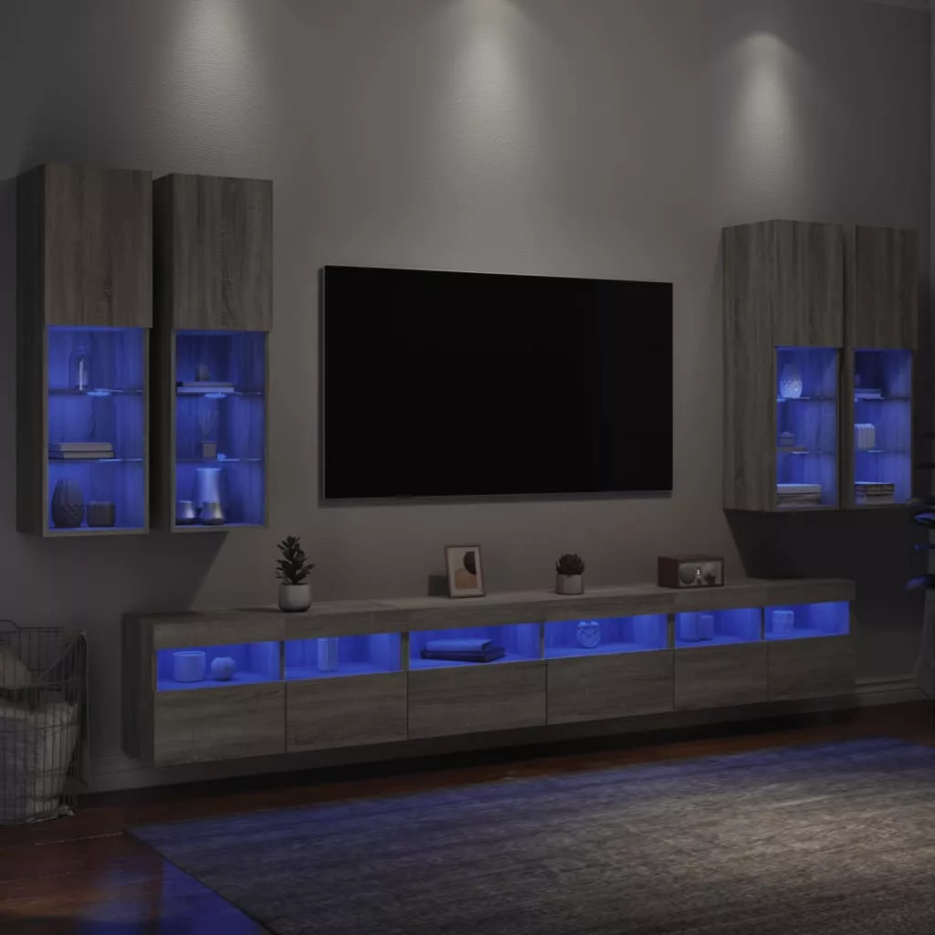 - RGB LED-világítás: A falra szerelhető médiaegység élénk RGB LED-világítással lett felszerelve. A sokféle testre szabható menü segítségével egyszerűen megváltoztathatja a világítás színét, sőt, automatikus váltakozást is beállíthat. Ezek a LED-lámpák nemcsak a lebegő TV-egység modern megjelenését, de divatosságát is növelik.