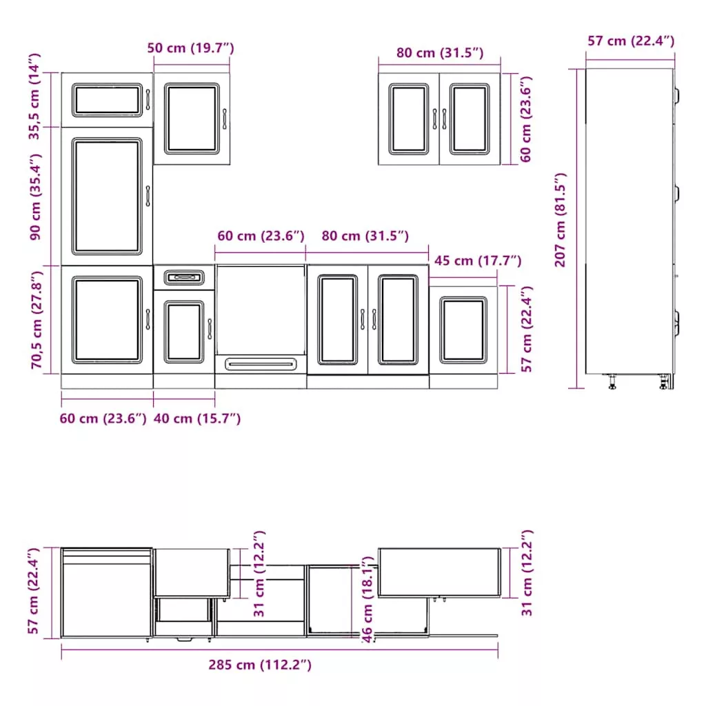 - Bőséges tárolóhely: A konyhaszekrény-garnitúra számos rekesszel rendelkezik, és elegendő helyet kínál tálak, tányérok, edények és egyéb konyhai eszközök tárolására.