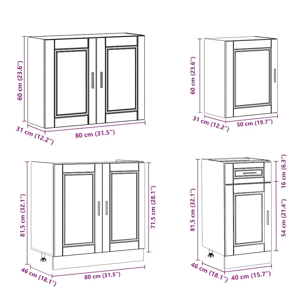 - 1 x Konyhai felsőszekrény: 80 x 31 x 60 cm (Sz x M x Ma)