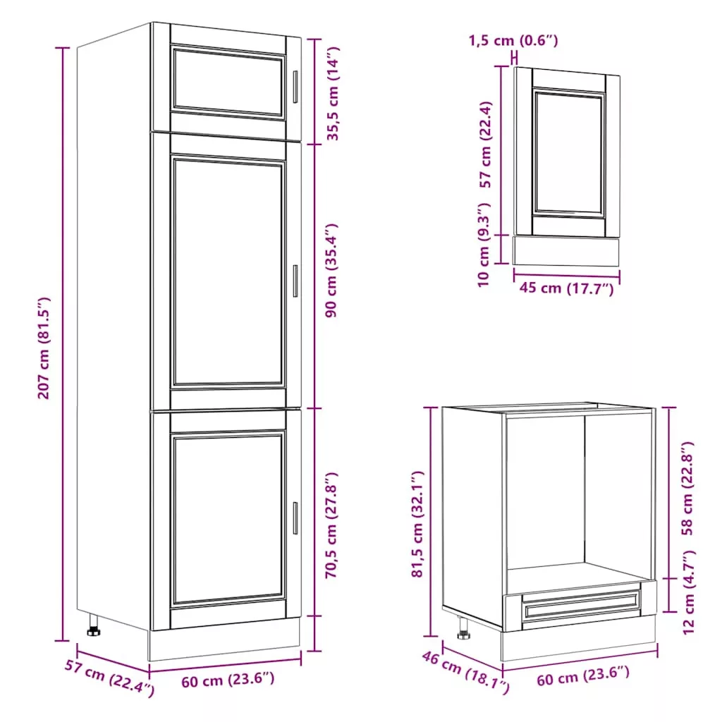 - 1 x Sütőszekrény: 60 x 46 x 81,5 cm (Sz x M x Ma)