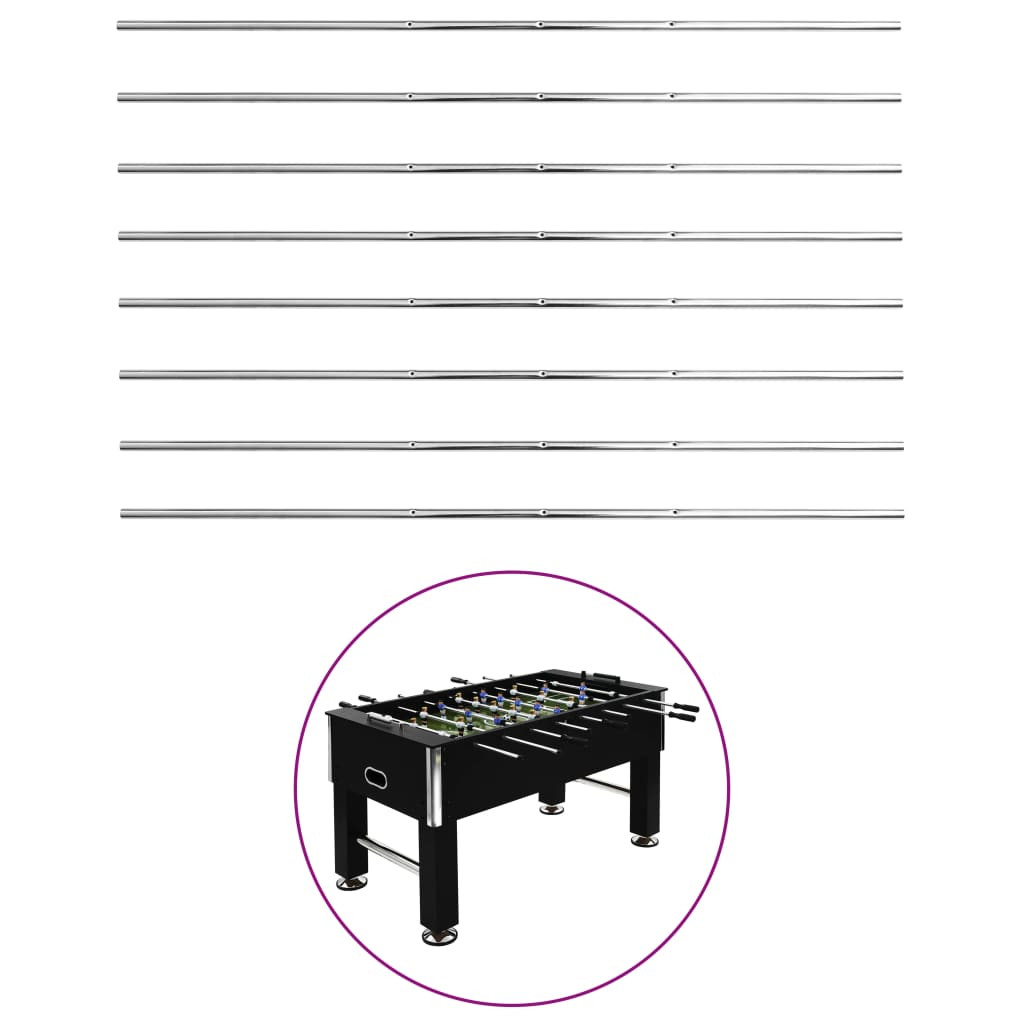 Ez a 8 darabos csocsóasztal acélrúd szett elegendő ahhoz, hogy felszereljen vele egy hagyományos csocsóasztalt. Ideális a kopott vagy gyengébb minőségű rudak cseréjéhez az élvezetesebb játékélmény érdekében.