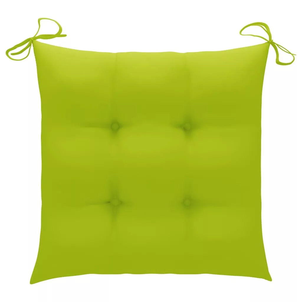 Ez a rendkívül strapabíró kemény tíkfából készült bútordarab természetesen, illetve kemencében volt szárítva, majd finomra lett csiszolva az elegáns megjelenés érdekében. A tíkfa szilárd és ellenáll az időjárás viszontagságainak, ezért kiválóan alkalmas kültéri használatra, más fatípusokkal szemben. A tíkfa egy kitűnő választás, ha hosszú időn keresztül tartó kerti bútort szeretne vásárolni. A minőségi rozsdamentes acélváz tartóssá, rozsdaállóvá és stabillá teszi. A mellékelt párnák igazán praktikus kiegészítők, ráadásul dekoratív funkciójuk is van. Dőljön hátra egy kellemes kültéri vacsorához, vagy egyszerűen csak pihenjen és élvezze a természetet ezzel a klasszikus kerti székgarnitúrával.