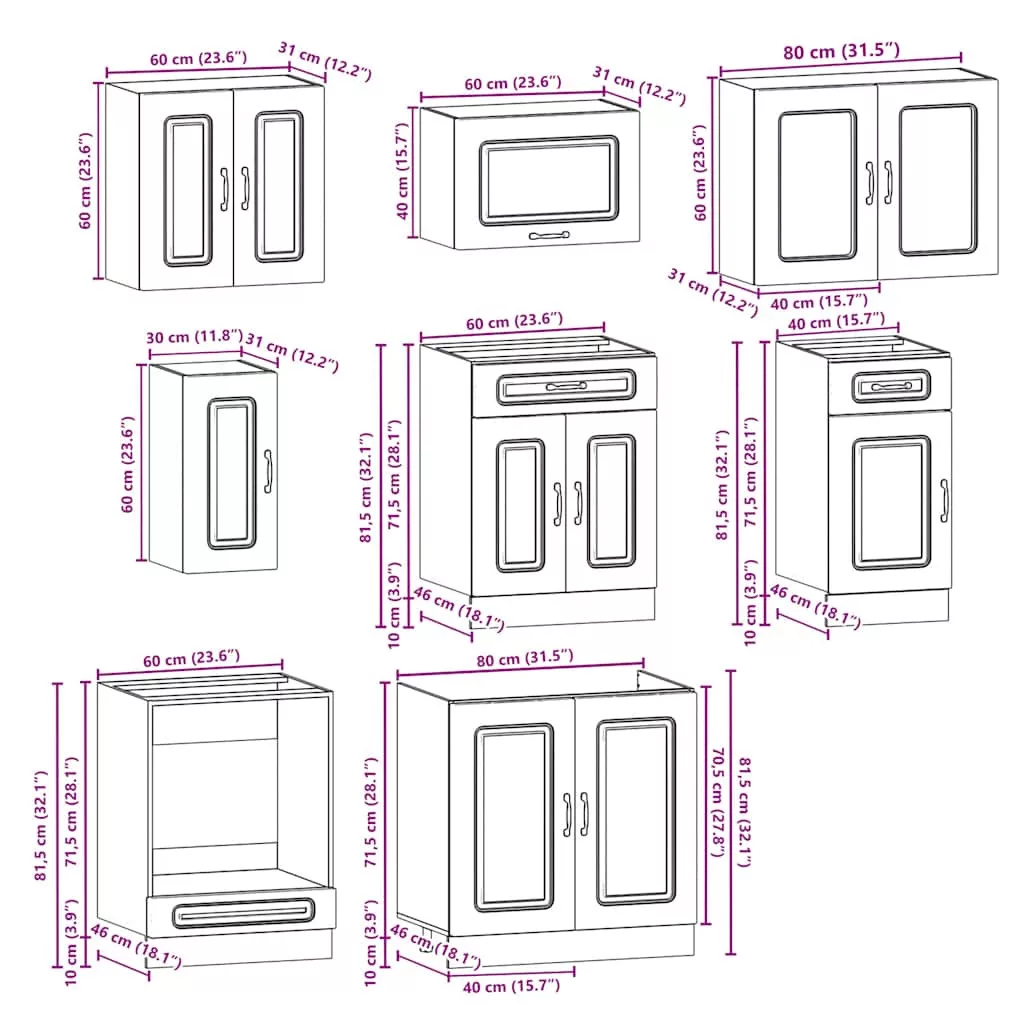 Ez a 8 darabos konyhaszekrény-garnitúra elegáns kialakításával optimalizálja a konyhateret, és bőséges tárolóhelyet biztosít személyes tárgyaidnak!