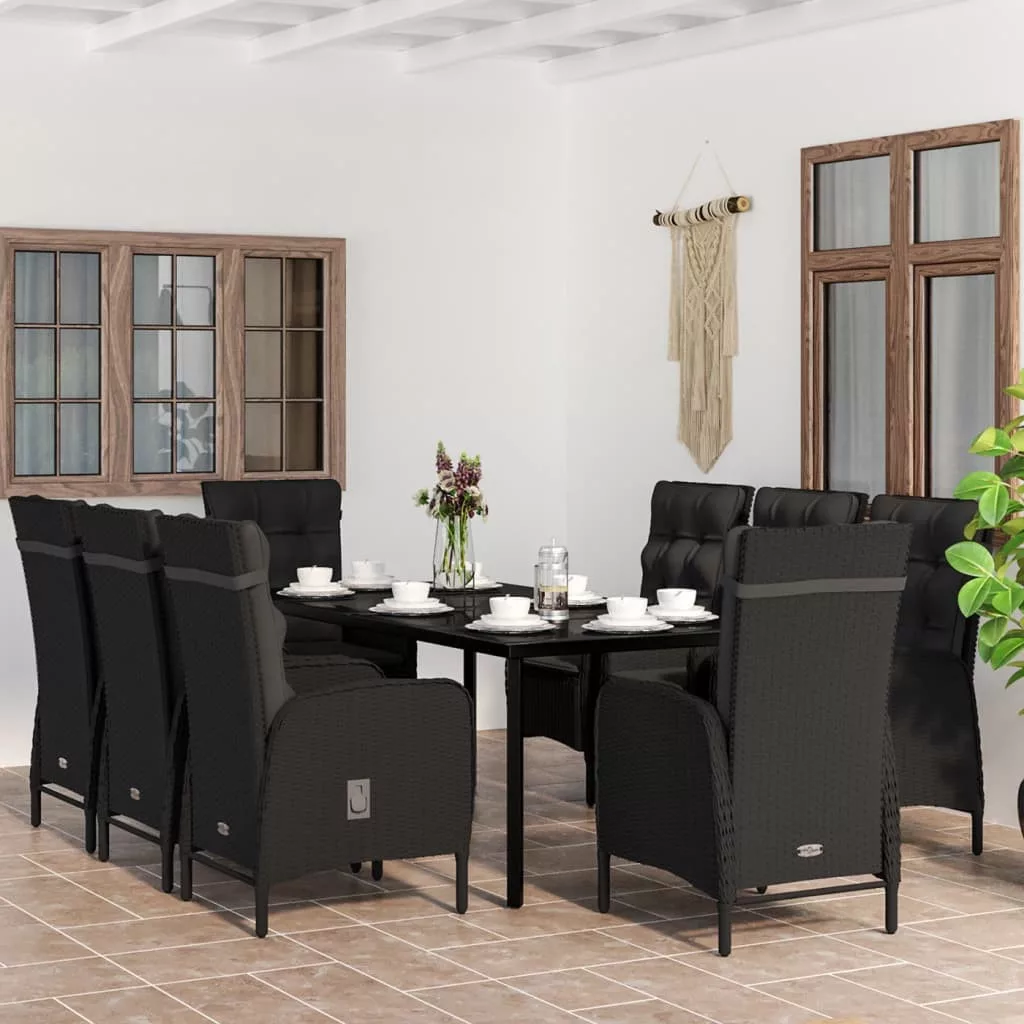 A porszórt acélvázak erőssé és stabillá teszik az asztalt és a székeket a mindennapos kültéri használathoz. A vízálló PE-rattannak köszönhetően a székek könnyen tisztíthatóak és mindennapos használatra alkalmasak. A sima üveglap nedves ruhával könnyen tisztítható, továbbá ideális ételek, italok és egyéb dísztárgyak elhelyezésére.